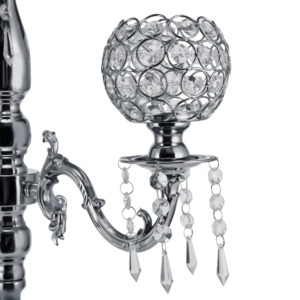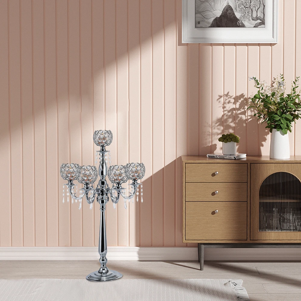 Specification Color: Silver Style: Stylish, Luxurious Material: Iron, Glass, and Acrylic Surface Treatment: Electroplating Applicable Candle Diameter: 5.5cm/ 2.17in Each Head Diameter: 10cm/ 4in Base Diameter: 36cm/ 14.2in Candle Holder Height: 75cm/ 29.5in Candle Holder Width: 55cm/ 21.6in Package Size: 50*24*24cm/ 19.69*9.45*9.45in Net Weight: 4.5kg/ 9.92lbs Gross Weight: 5kg/ 11.02lbs Package Included 1* Five-arm Candelabra Candelabra 5 Arms Tall Floor Crystal Candlestick Holders for Pillar Candle European Style Long Table Crystal Candlestick Hotel Wedding Decoration Candlestick Decoration Romantic Atmosphere Candlestick Christmas Decoration D escription 🕯 🎅 _ Classic and timeless! Let's add a touch of old-time beauty to the tabletop and dinner setting with this five-arm candle holder, adding a pleasant and soothing mood to your dinner! With its elegant design, it is not only a candle holder but also a decoration in your room. It can be placed in your living room, bedroom and study. It can also be used as a gift for your family or friends! KEY FEATURES 🕯 5 Candle Arms The 5 arms fit all candles within 5.5cm/ 2.17in diameter. And they are set at different heights, creating a symmetrical visual appeal for you. Top Candle Holder The top candle holder is designed like the shape of a cup, and the edge is raised to ensure that the candle can be placed on it stably. Application This five-arm candelabra can be placed in the living room, bedroom, office, etc. It is also a novel gift for the graduation ceremony, anniversary, New Year, Christmas, and some other festivals. Fine Workmanship Each candle head is made of selected high-quality glass beads, and its openwork carved design conveys a sense of natural freshness and dignity. And it uses all-metal welding. Elegant Design Sparkling crystal drops glisten in the light and beautifully reflect the light onto the curved branches. Stable Placement The base of this candle holder is a 36cm/ 14.2in diameter disc design. The enlarged round base is more solid. _WHAT'S MORE_ Atmosphere Maker: Let the light be present and bring you a soothing atmosphere with candlelight. Light up the night and enjoy a spectacular candlelight show. Light Weight: With a weight of 4.5kg/ 9.92lbs, the five-arm candelabra is light enough to be moved anywhere you want, facilitating your daily use. Ideal Gift: The elegant silver look combined with the delicate engraving style gives this candle holder a gorgeous appearance, making it a great decorative piece. You can give it as a gift to your friends or family. Ideal Decoration: Put the finishing touches on dining tables with a piece of classic art. Design and decorate exquisite tables for indoor or outdoor parties or weddings. High Durability: This five-arm candelabra is made of iron, glass, and acrylic material with electroplating treatment, which makes it rust-proof and durable, allowing you to use it for a long time without worrying about fading. Easy to Clean: You can easily clean it without much effort and time because of its smooth surface and fewer gaps. If there is dust, just wipe it off with a towel. Easy to Install: The body of the candle holder is already assembled and you just need to join them together to get an elegant 5-arm candle holder! Specification 🕯 Color: Silver Style: Stylish, Luxurious Material: Iron, Glass, and Acrylic Surface Treatment: Electroplating Applicable Candle Diameter: 5.5cm/ 2.17in Each Head Diameter: 10cm/ 4in Base Diameter: 36cm/ 14.2in Candle Holder Height: 75cm/ 29.5in Candle Holder Width: 55cm/ 21.6in Package Size: 50*24*24cm/ 19.69*9.45*9.45in Net Weight: 4.5kg/ 9.92lbs Gross Weight: 5kg/ 11.02lbs Package Included 1* Five-arm Candelabra 🧐Notes Please use a soft, dry cloth for cleaning. Please note the safety rules for fire and candles. And we recommend using electronic flameless candles instead of burning candles. Please allow the slight color difference caused by the shooting light and 1-3 cm error due to manual measurement, and make sure you do not mind before ordering. Payment Delivery details Terms of sales About us Contact us Payment We accept ebay payment 。 Fees such as import duties, taxes are not included in the item price or shipping costs. These charges are the buyer's responsibility. Delivery details Shipping: 2-9 working days to: USA Terms of sales We maintain high standards of excellence and strive for hundred percent customer satisfaction. Feedback is very important to us. We hope that you contact us immediately before you give neutral or negative feedback, so that we can address your concerns. It is impossible to address issues if we do not know about them! About us Your satis faction is our ultimate goal. We work hard to earn your trust and future business. Our certified technicians have tested each item before shipping. The unit comes with 1 year limited warranty on all manufacturing defects. a) If you receive a defective item, you may return it or ask for a discount. Please contact us within 14 days after you receive the package. b) What you returned must be intact and in its original packaging as re? u. Customer is responsible for shipping costs of the returned item. c) We will cover the cost of shipping back t with the shipping rate indicated in the registration page. We will send you a new unit or refund the full payment you paid. Thank you. Contact us Business Hour Business Hour: Monday To Friday: 8:30 AM to 5:00 PM (Beijing China time) Due to time zones, our reply to your questions may not be immediately. But within above working time, we will reply your email within 24 hours. If it's non-workdays, please kindly be patient and wait till Monday. Please contact us with ebay message. Please feel free to contact us if you have any questions. Monday To Friday: 8:30 AM to 5:00 PM (Beijing China time) Due to time zones, our reply to your questions may not be immediately. But within above working time, we will reply your email within 24 hours. If it's non-