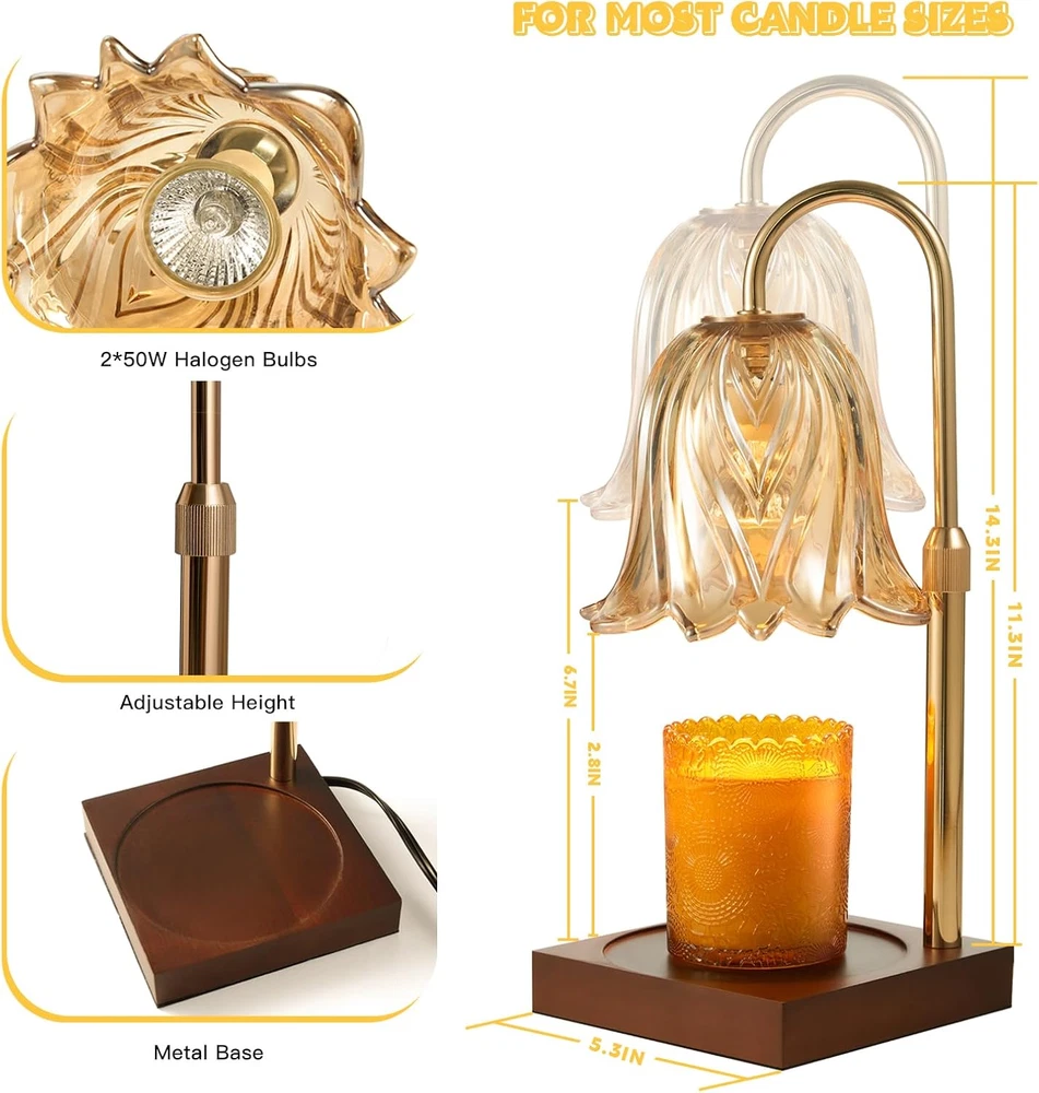 Dimmable and Timer: The candle warmer lamp control the brightness and heat release to match different scent concentrations and candle lifetimes. The timer function allows you to sleep with peace of mind. Pure and Rich Fragrance: The candle's scent is produced by the top-down candle warmer, without any burning smell or ash, making it safe for humans. This candle warmer utilizes the candle to its fullest, doubling the scent's duration compared to burning candles. Safety and Aesthetics: No flames or smoke. Wooden base and metal lamp body. The wax melts warmer for scented wax serves as delicate and functional decorative lights for bedroom decor, living room decor aesthetic, studies, offices, yoga rooms, and more. Height Adjustable: With its stability and adjustable height, this candle warmer is suitable for all candle sizes. Best Fathers Day Presents: The wax melter will be the best presents for mom choice to show your love to your families, lover, or friends on Valentine's Day, Thanksgiving, Christmas, New Year, Housewarming or other special occasions. Birthday presents for women, birthday presents for men. Product Description