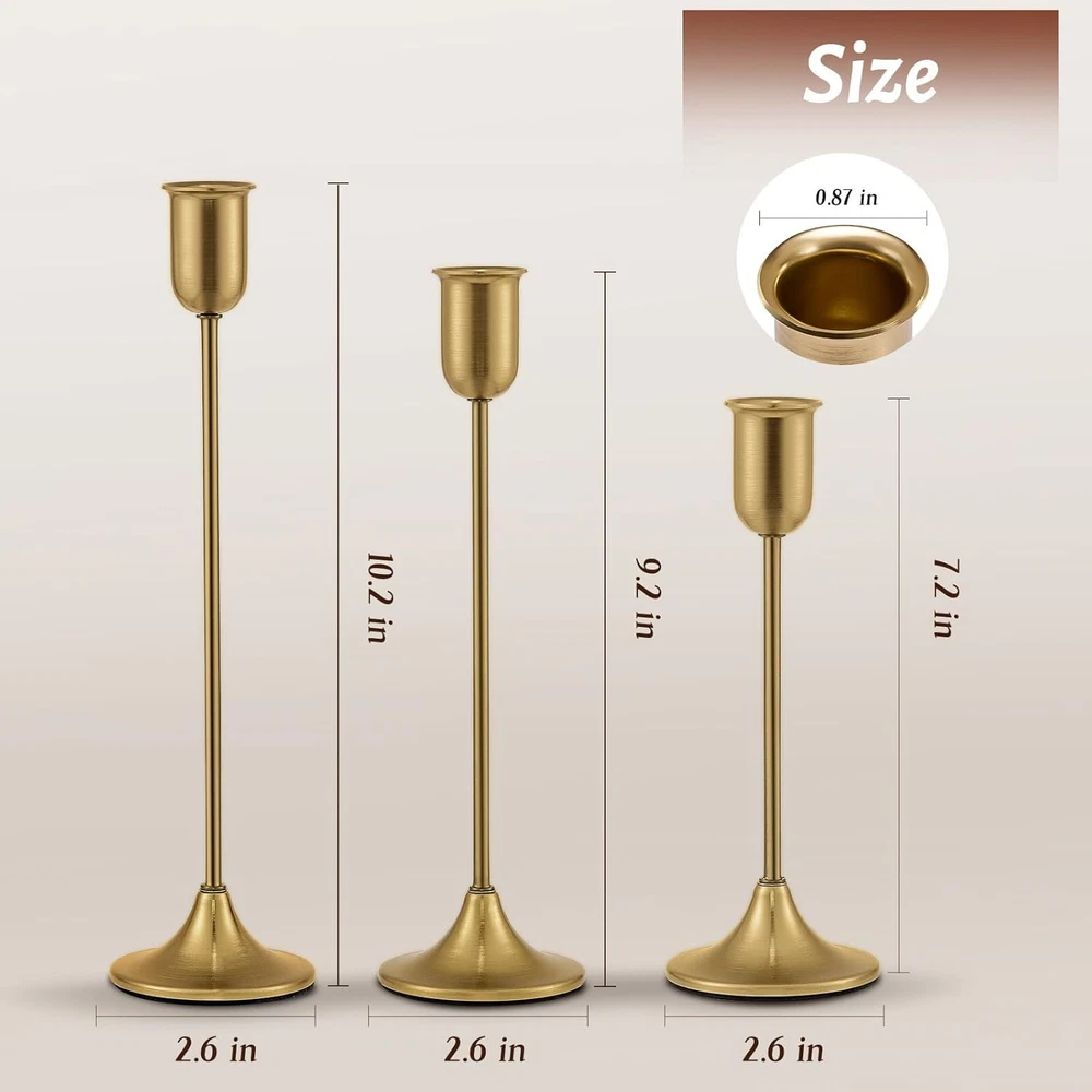 Candlestick Holders, Taper Candle Holders Set of 3, Gold Vintage Candle Sticks H
