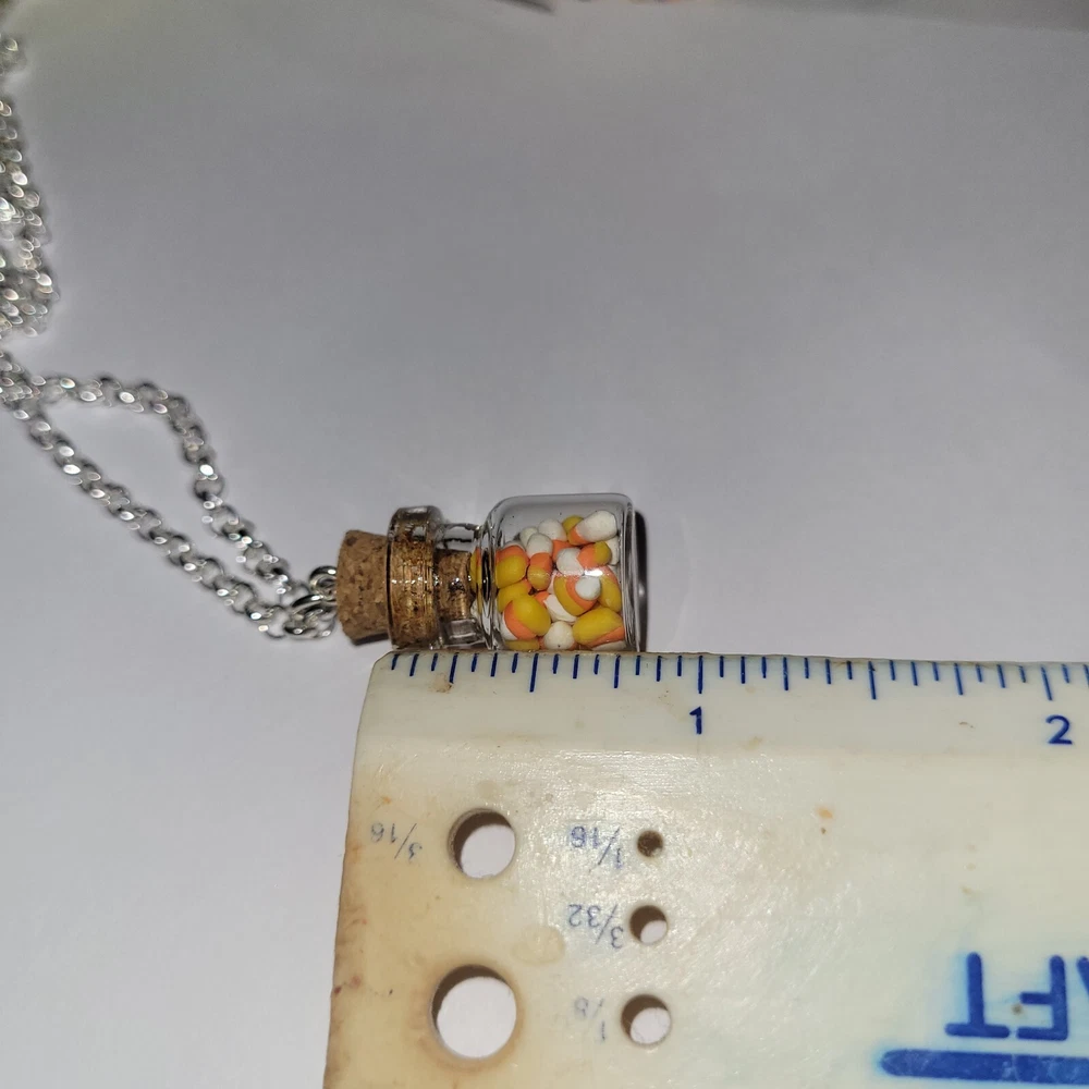 Candy Corn Bottle Necklace Silver Charm Fall Halloween Candy