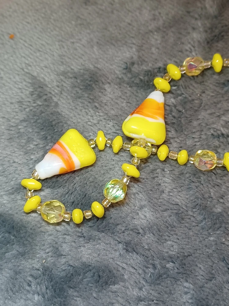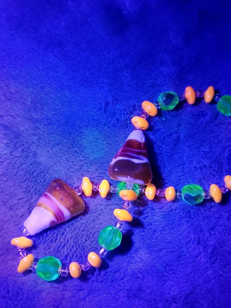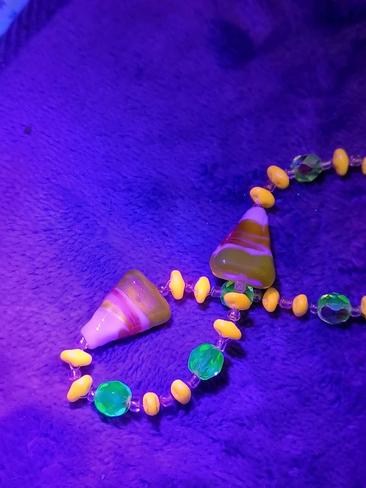 Whether you're dressing up for a special occasion or just want to add some sparkle to your everyday look, this bracelet is the perfect accessory. It's made from high-quality materials and is designed to last for years to come. So why wait? Add this gorgeous Candy Corn Glowing Bracelet to your jewelry collection today! Czech cadmium, uranium beads used. This is a handmade item.