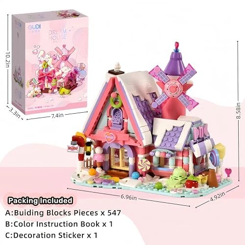 Return Policy Fast Delivery Trusted seller Candy House Building Kit, DIY Pink Dream Houses Toys Set with Rotatable Windmills, 547Pcs STEM Educational Toy, Christmas Birthday Party Ideal Gifts for Ages 6 7 8-14 and UP Girls Daughter Kids Product Description 【Dreamy Candy House】- This building block set is rich in details, including candy cane stairs, marshmallow chimneys, ice cream door decorations, rotatable windmill shapes, opening and closing windows, rotatable decorative hearts, and colorful colors. They create a vivid fantasy candy house, leading the kids 6-8 8-12 into a magical fairy tale world 【Easily assemble & Inspire Creativity】- The 547 pieces dreamy desserts house blocks kits with precise step-by-step instructions and numbered packages, so children can easily find the blocks they need and finish assembling them, a process that skillfully hones kids hand-eye coordination and activates endless creative thinking, reaping the benefits of fun and creative building 【Parent-child Educational Toys】- Candy house construction toys not only allow girls to enjoy the fun of role-playing, but also can be a relaxing leisure time for adults. In the process of building together, exercise children's ability to express themselves, improve communication skills, enhance family cohesion, bring fun, is the best parent-child educational toys 【Perfect Gift for Girls】- This building toy beautifully packaged,with bright colors and interesting shapes.Is a perfect building brick sets gift for kids on parties,birthday,valentines,easter,thanksgiving,christmas,halloween; Size 8.58 in*4.92 in*6.96 in, 547 PCS 【Safe & Skin-friendly Materials】- Candy house building blocks toys is made of skin-friendly grade high quality ABS material, ensuring children's safety when using rounded without hurting hands, and colorfast. Each sweet shop building set is checked in detail for quality and quantity before packing Shipping Returns Payment Shipping Shipping is FREE to all addresses other than APO/PO boxes in the lower 48 states. All our stock ships from US-based warehouses. Shipped via USPS or UPS (depending on location and package weight) Unless stated otherwise, all orders will ship within 24-72 hours of your payment being processed. Check our feedback to see the great reviews of FAST shipping we offer. Returns Seller does not accept returns Payment We currently accept payment via eBay managed payments only. Once payment is cleared, we will dispatch your shipment within 1-3 business days. Please refer to the "Shipping" tab for more information regarding shipping speed to your destination.
