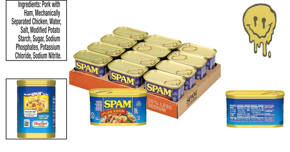 Canned Pork 7oz Less Sodium 12-Pack for Breakfast Lunch Dinner ‹ › ‹ › ‹ › ‹ › ‹ › ‹ › ‹ › ‹ › Discover the Deliciousness of SPAM Less Sodium - Flavor with Less Sodium! SIZZLE, PORK AND MMM! SPAM Less Sodium offers a mouthwatering taste that elevates any breakfast, lunch, or dinner. With 25% less sodium than the classic, this iconic, fully cooked, shelf-stable meat is perfect for adding a burst of flavor to your favorite dishes like omelets, mac & cheese, burgers, tacos, pasta, or eggrolls. Great for Every Meal – Enhances breakfast, lunch, dinner, and snacks with meaty goodness. Versatile Usage – Ideal for sandwiches, casseroles, bbqs, and more. Convenient & Long-lasting – Fully cooked, shelf stable, with twelve 7 oz cans included. Healthier Choice – Enjoy the same great taste with 25% less sodium. Stock up now! A taste everyone loves, but supplies are limited. Add some meaty goodness to your pantry and enjoy delicious meals any time of day with SPAM Less Sodium. Trust in a Global Icon – Fully cooked, shelf-stable, and loved worldwide for quality and flavor. Don't wait — add deliciousness to your cart today! Shipping Free & Fast Shipping - We offer free shipping to most of the USA with a normal delivery time of 3-7 days. However, due to the current situation, additional delivery time (up to 3 weeks) may be required for some items. Alternative Carriers - We may use alternative carriers (e.g. USPS, FedEx, UPS, etc.) to ensure your package arrives safely and on time. Due to the use of multiple carriers, we are unable to provide a tracking number automatically. Handling Time - Orders are processed and shipped within 1-2 business days of receiving cleared payment. Shipping Restrictions - Shipping to Alaska, Hawaii, Puerto Rico, Guam, and other US territories may incur shipping charges or delivery restrictions. Please contact us before ordering, or your order can be refunded/cancelled. State Restrictions - There may be restrictions based on your state of purchase. For example, certain items may not be shipped to California due to state regulations. Contact for Tracking Updates - If you require tracking updates or have any concerns about the delivery of your order, please feel free to contact us, and we will be happy to assist you. Return 30-Day Hassle-Free Returns - We want you to be completely satisfied with your purchase. If you are not, you can return the item within 30 days of receiving it for a full refund or exchange. Easy Return Process - To start a return, simply contact us and we will provide you with a prepaid return shipping label and detailed instructions. Restocking Fee - There are no restocking fees for returns. However, the buyer is responsible for return shipping costs if the return is not due to a seller's error. Refund Processing Time - Refunds will be processed within 5 business days of receiving the returned item in its condition. Payment We accept all major credit cards, PayPal, and Apple Pay for your convenience. Your payment information is secure and encrypted to ensure a safe and seamless transaction. Please complete your payment within 3 days of purchase to avoid any delays in shipping. Feedback Your feedback is extremely important to us. We strive to provide the best products and customer service possible. If you are satisfied with your purchase, please take a moment to leave us a positive review. If you have any concerns or issues with your order, please contact us before leaving negative feedback. We are committed to resolving any problems and ensuring your satisfaction. Contact Us If you have any questions or concerns, please feel free to out to our customer support team. You can contact us through the eBay messaging system. We are available Monday to Friday, 9:00 am to 5:00 pm EST, and we will do our best to respond to your inquiry within 24 hours. Buy it now and enjoy a pleasant shopping experience! Course: Breakfast Number in Pack: 12 Style: Less Sodium Unit Quantity: 7 oz Food Specifications: Gluten Free Allergens: None Product: Deli & Preserved Meat & Poultry Type: Pork Form: Spam Calories per Serving: 100 Number of Servings: 12 Serving Size: 1 Can Item Weight: 7 oz