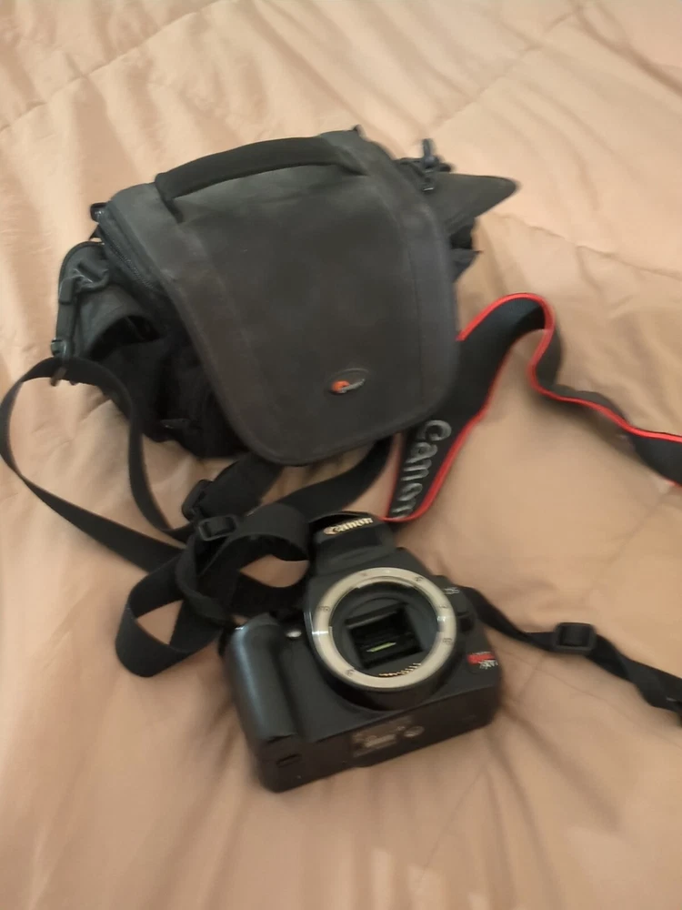 THE CF CARD IS BROKEN, THERE IS ONE BENT PIN AND ONE MISSING PIN. This comes with a separate 3rd party battery and a wall charger, and a car charger, THIS DOES NOT HAVE A LENS, (SOLD SEPARATELY ON PROFILE!) THIS COMES WITH A CASE! This Canon EOS Digital Rebel XTi camera is a great choice for any photography enthusiast. With a maximum aperture of f/3.5, digital zoom of 10x, and a 1.8 inch screen size, it is perfect for capturing stunning images. The camera is black in color and uses a Lithium-Ion battery. It is a digital SLR type camera with a maximum resolution of 10.1 MP and comes with features such as auto focus and USB connectivity. Made in Japan, this camera is a reliable and high-quality option for any photographer.