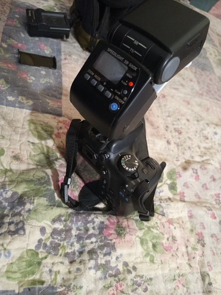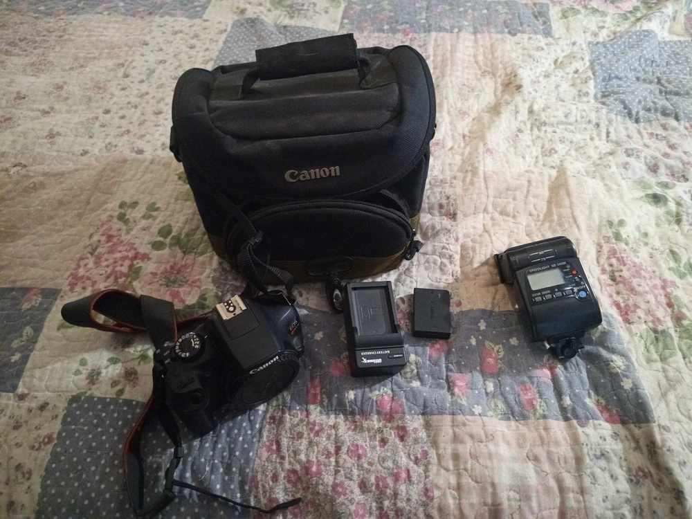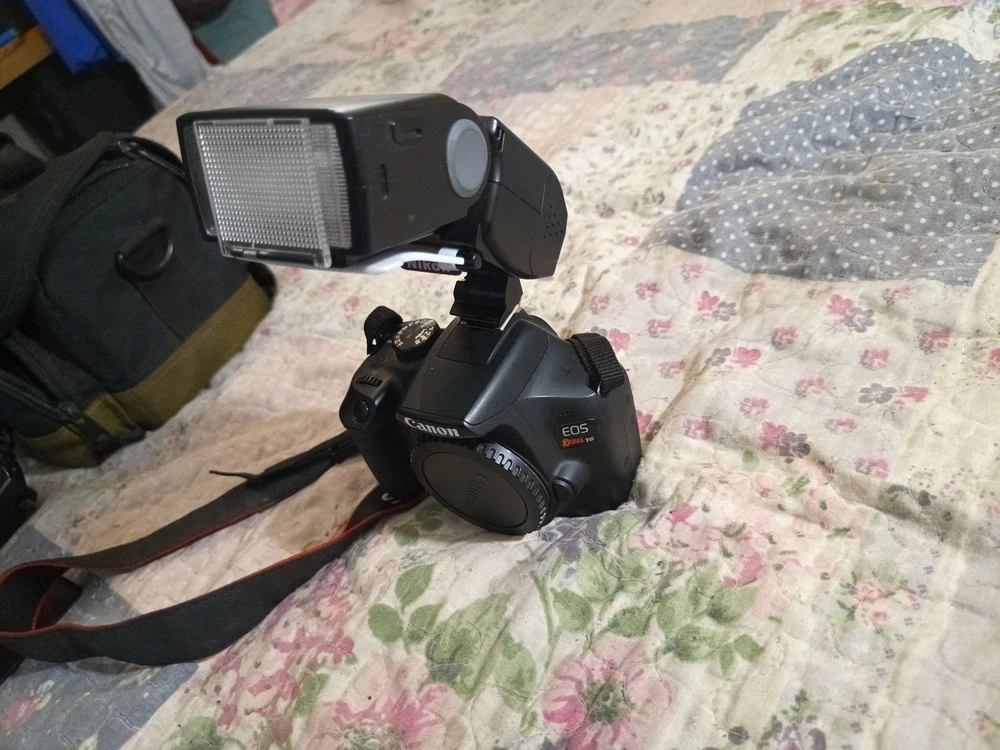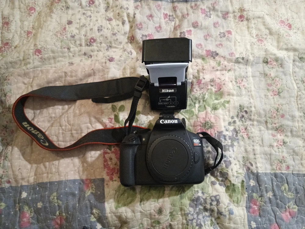 The Canon EOS Digital Rebel T6 (Model DS126621) is a black digital single-lens reflex (DSLR) camera with a maximum resolution of 18.0 MP. This unit includes a Lithium-Ion battery and does not come with a lens. It is part of the Canon EOS Digital Rebel series, known for its high-quality imaging capabilities and user-friendly design. This camera is suitable for photography enthusiasts looking to capture detailed and professional-quality images. Item has battery and charger and comes with a Nikon professional flash with upgraded rechargeable batteries for flash (fash charger sold separately)Complete with original Cannon bag and neck strap. (Done NOT come with lense OR SD card) Works like brand new