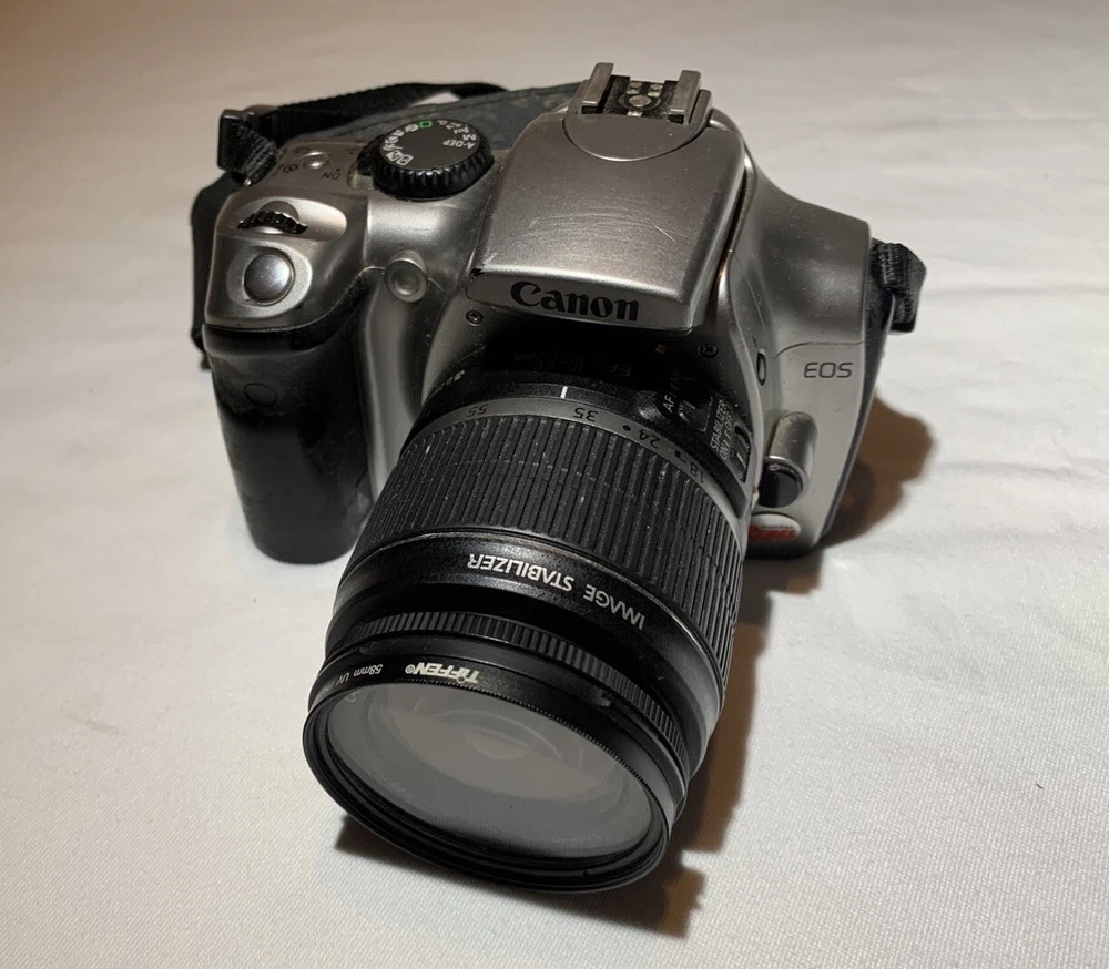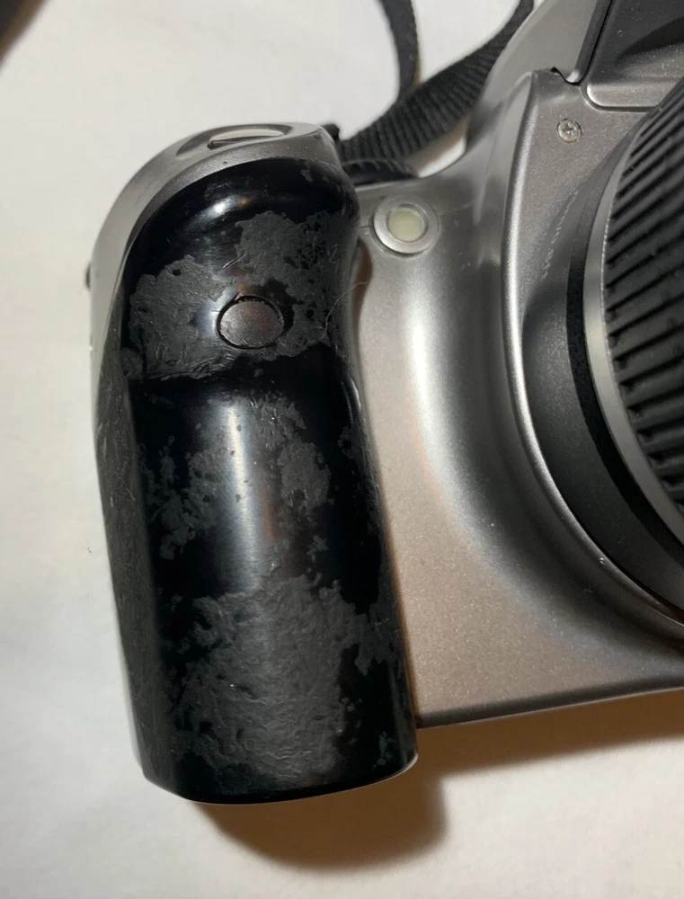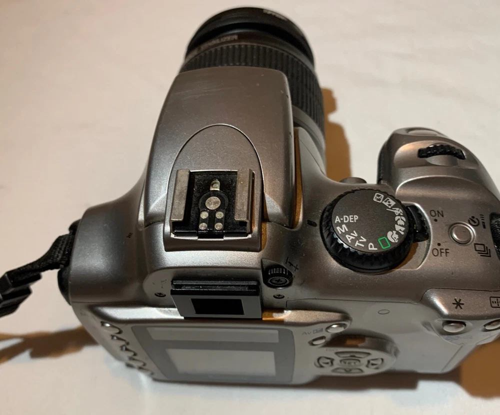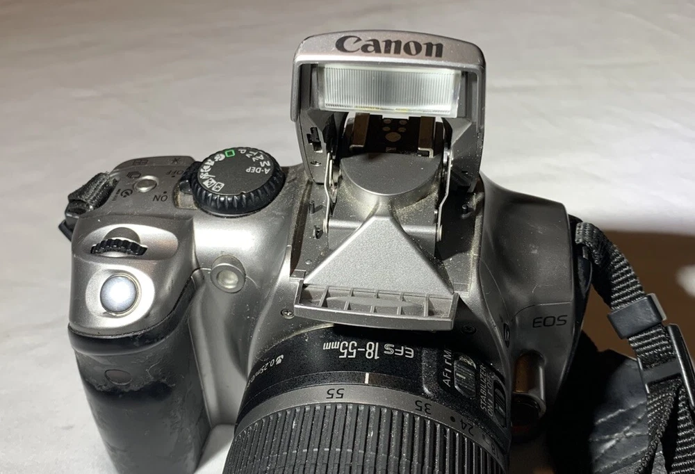 Color: Silver Type: Digital SLR Model: Canon DS6041 Digital Rebel EOS Country/Region of Manufacture: Taiwan Features: AE/FE Lock, AF Lock, Auto Focus, Built-in Flash Maximum Resolution: 6.3 MP Brand: Canon Battery Type: Lithium-Ion Screen Size: 1.8 in Series: Canon EOS