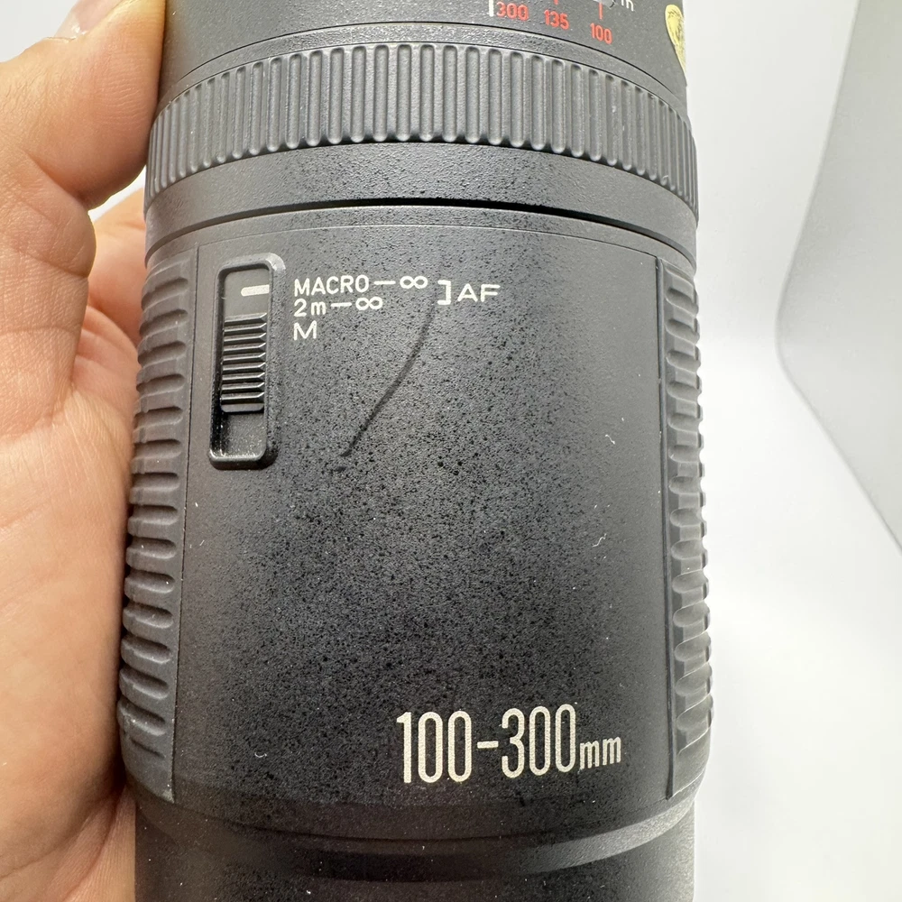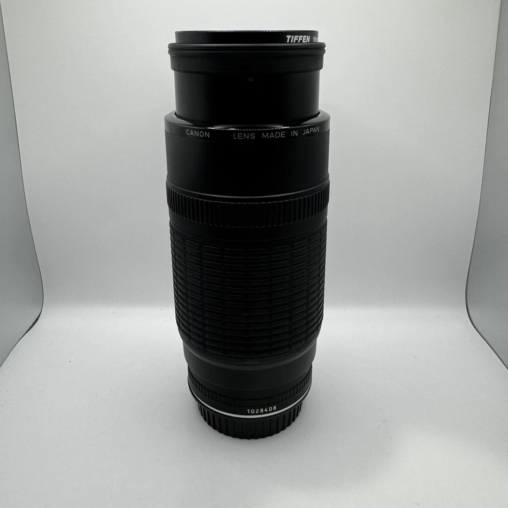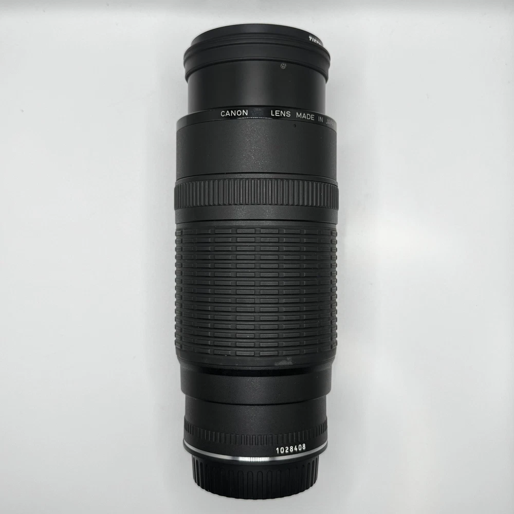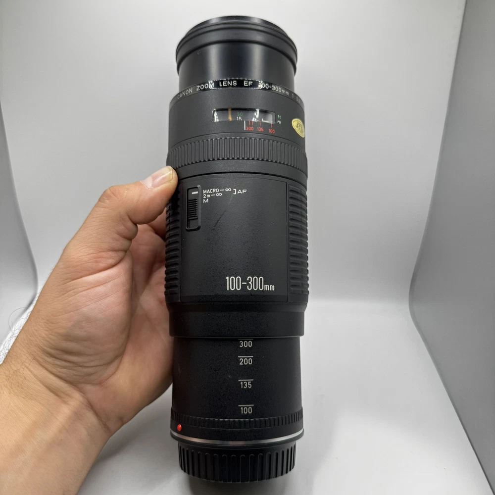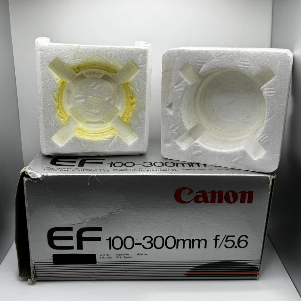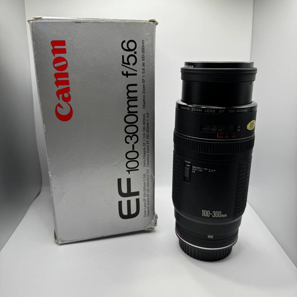 Canon EF 100-300mm f5.6 Macro Lens With Original Box This item is preowned and in good condition. Has some minor wear from use. It is missing the from lens cover. Box has some minor damage. See photos for details. Fast Shipping!!