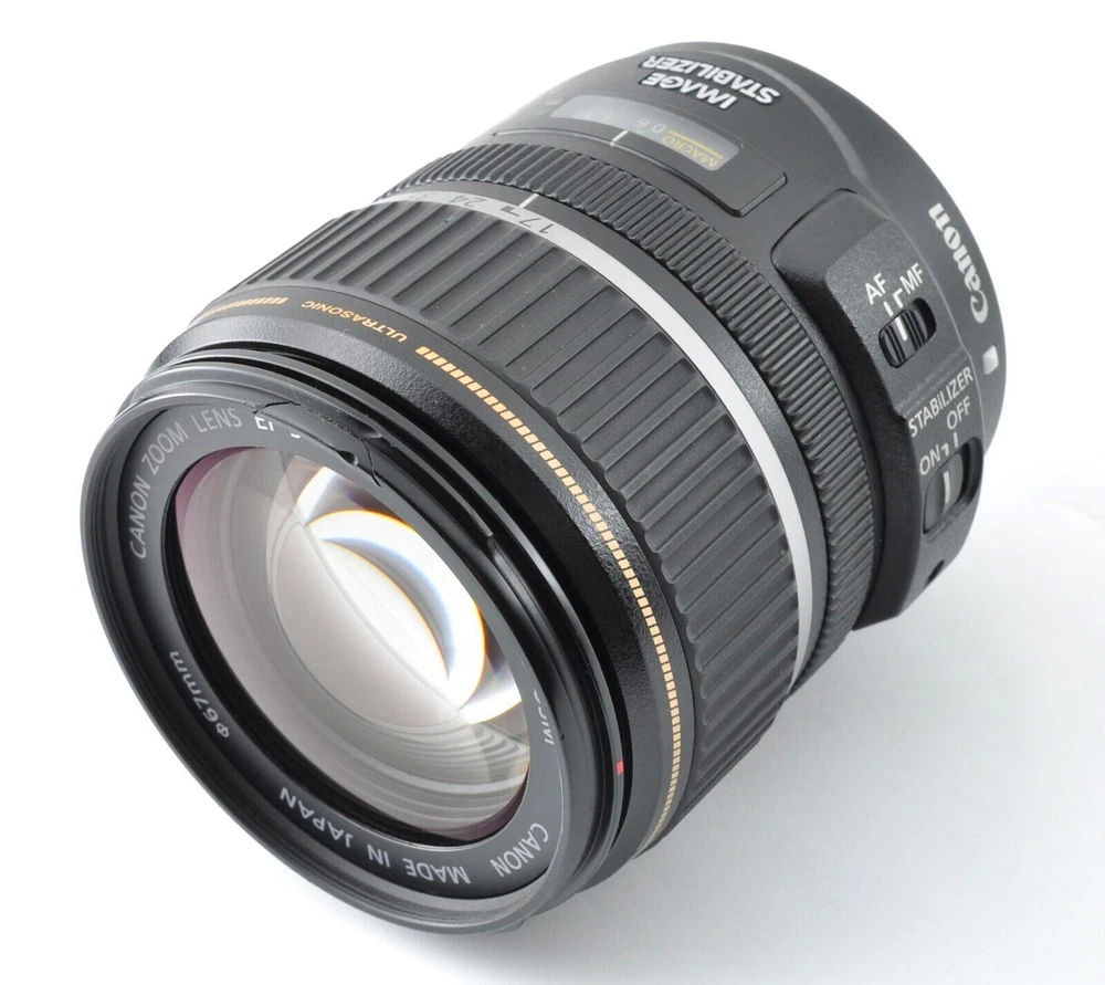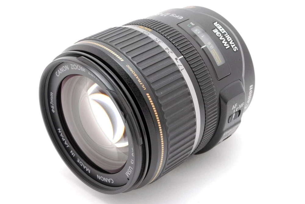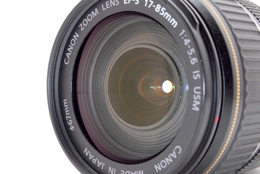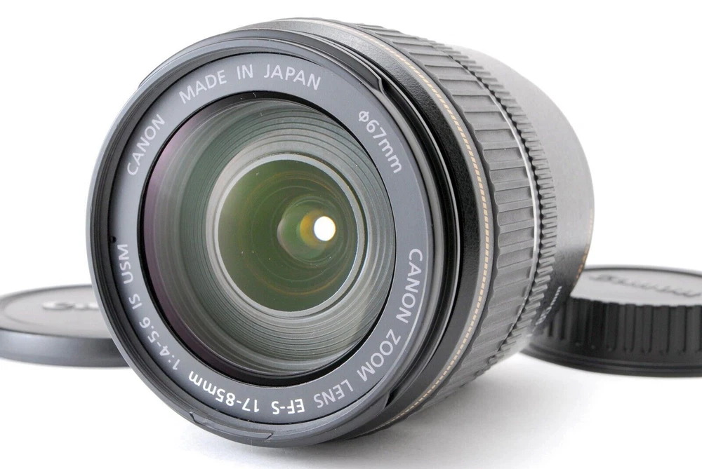 Package included: 17-85mm Lens *1 Lens front cover *1 Lens back cover *1 Whether you’re shooting landscapes, portraits, or spontaneous moments, the Canon EF-S 17-85mm f/4-5.6 IS USM is a versatile, reliable lens that delivers excellent results in various scenarios. Versatile Zoom for Everyday Photography: With a focal length equivalent to 27-136mm on full-frame cameras, this lens covers a highly practical range, perfect for capturing a wide variety of subjects. Whether it’s landscapes, portraits, or casual snapshots, this lens has you covered. Its lightweight and compact design make it an excellent companion for travel and everyday use. Built-In Image Stabilization: The lens features advanced image stabilization technology, providing up to 3 stops of shake correction. This allows for clear handheld shots in low-light settings or when using slower shutter speeds for creative effects. Advanced Optical Design: Optimized for APS-C sensors, the lens delivers a 5x zoom range with outstanding image quality. It’s the first EF lens to incorporate dual-sided aspherical elements, effectively reducing distortion and aberrations for sharp, high-contrast images throughout the zoom range. Product Highlights Versatile Focal Range: Covers 27-136mm (35mm equivalent) for a wide range of applications Lightweight and Compact: Weighing only 475g (1.05 lbs), it’s easy to carry on your adventures Image Stabilization: Compensates for up to 3 stops of camera shake for sharper images High-Quality Optics: 17 elements in 12 groups, including advanced aspherical elements for minimized distortion Close Focusing Distance: Minimum focusing distance of just 0.35m (13.8 inches) Specifications Lens Construction: 17 elements in 12 groups Focus Range: 0.35m (13.8 inches) to infinity Maximum Magnification: 0.20x Focal Length (35mm Equivalent): 27-136mm Filter Size: 67mm Dimensions: 78.5mm x 92mm (3.1 x 3.6 inches) Weight: 475g (1.05 lbs)