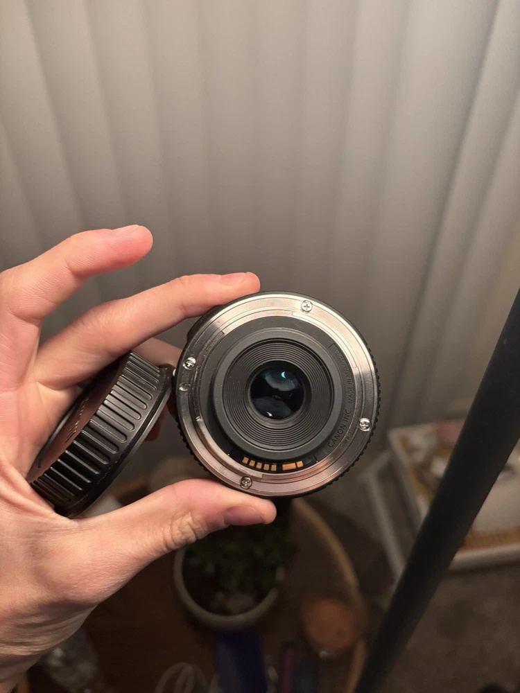 White background photos are model pictures!Appearance Light signs of use. Not brand new but works perfectly & looks great! All functions work properly. Tested with a Canon EOS body. Hit me up with any questions or concerns! Why I’m Selling It: Just Sold My Canon Rebel T6 And I No Longer Need The Lense :) (Sold the camera on EBay as well) Non original Parts: -Has a Samsung Front Cap Instead Of Canon