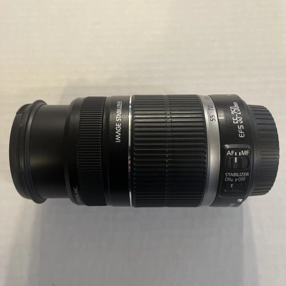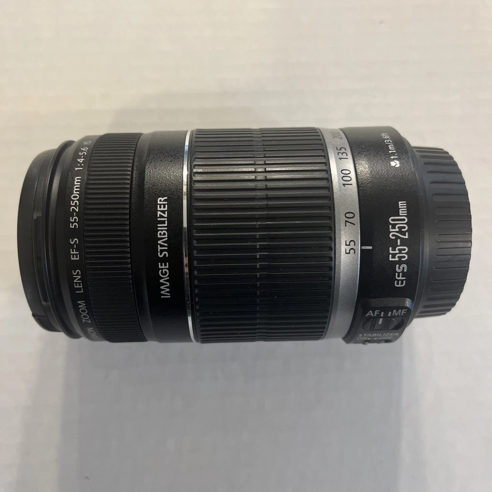 Canon EF-S 55-250mm f/4-5.6 IS Telephoto Zoom Lens – Sharp & Stabilized for Stunning Shots! Upgrade your photography with the Canon EF-S 55-250mm f/4-5.6 IS Telephoto Zoom Lens , designed for Canon APS-C DSLR cameras . This versatile telephoto lens delivers crisp, detailed images from medium to long-range distances, making it perfect for wildlife, sports, portraits, and travel photography . With Image Stabilization (IS) technology , you’ll enjoy smooth, quiet autofocus , even during video recording. Key Features: 55-250mm Telephoto Zoom – Capture distant subjects with precision and clarity. Image Stabilization (IS) – Reduces blur from camera shake for sharper handheld shots . Impressive Background Blur (Bokeh) – Achieve a beautiful depth of field for portraits. Compact & Lightweight – Easy to carry for travel and outdoor shooting. What’s Included? Canon EF-S 55-250mm f/4-5.6 IS Lens Front & Rear Lens Caps Why You’ll Love This Lens: Great for wildlife, sports, and travel photography . Works with all Canon EF-S mount cameras (APS-C DSLRs) . Image Stabilization ensures sharp images even in low-light conditions . Condition: Used – Good Take your photography to the next level with the Canon EF-S 55-250mm f/4-5.6 IS Telephoto Lens —order today! Shipping Details Fast Shipping! Orders are processed within 2 business days. Ships via USPS Media Mail/Priority Mail/FedEx/etc. Tracking included with every order. Returns & Customer Service Hassle-Free Returns: We accept returns within 30 days. Buyer pays return shipping unless the item is defective or incorrect. Questions? Feel free to message us—we’re happy to help! Seller Notes & Policies A ll items are clean, stored in a smoke-free environment . We strive for 100% customer satisfaction —please contact us if there are any issues before leaving feedback.