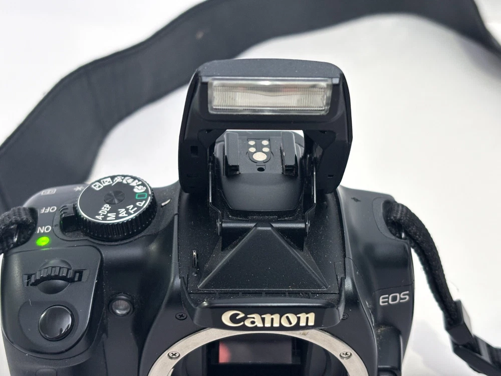 The product is a Canon EOS Digital Rebel XTi, part of the Canon EOS Digital Rebel series. It is a 10.1 MP digital SLR camera, specifically the body only (no lens included). The model is the Canon EOS Rebel XTi. Good overall condition, comes with battery and charger. Tested everything working.