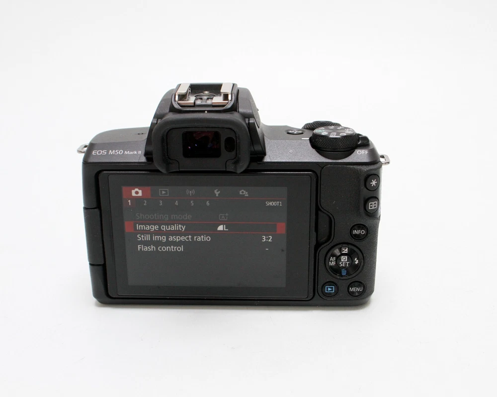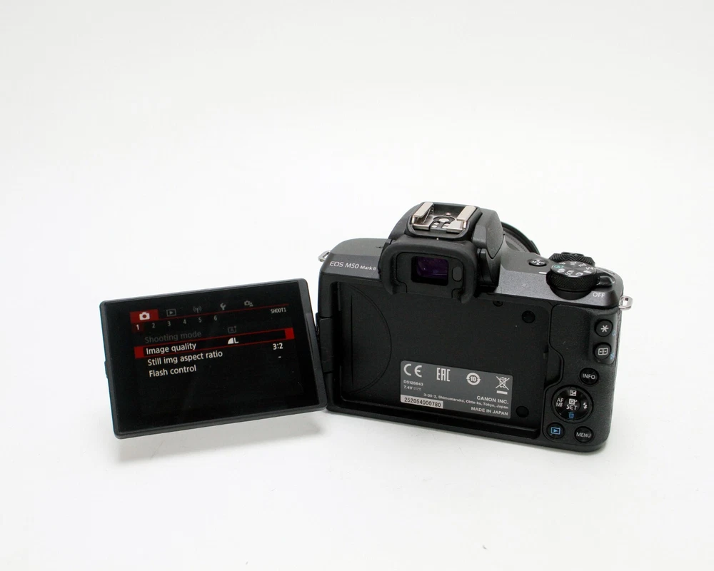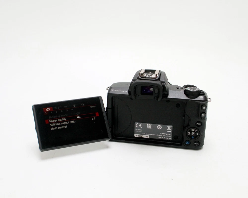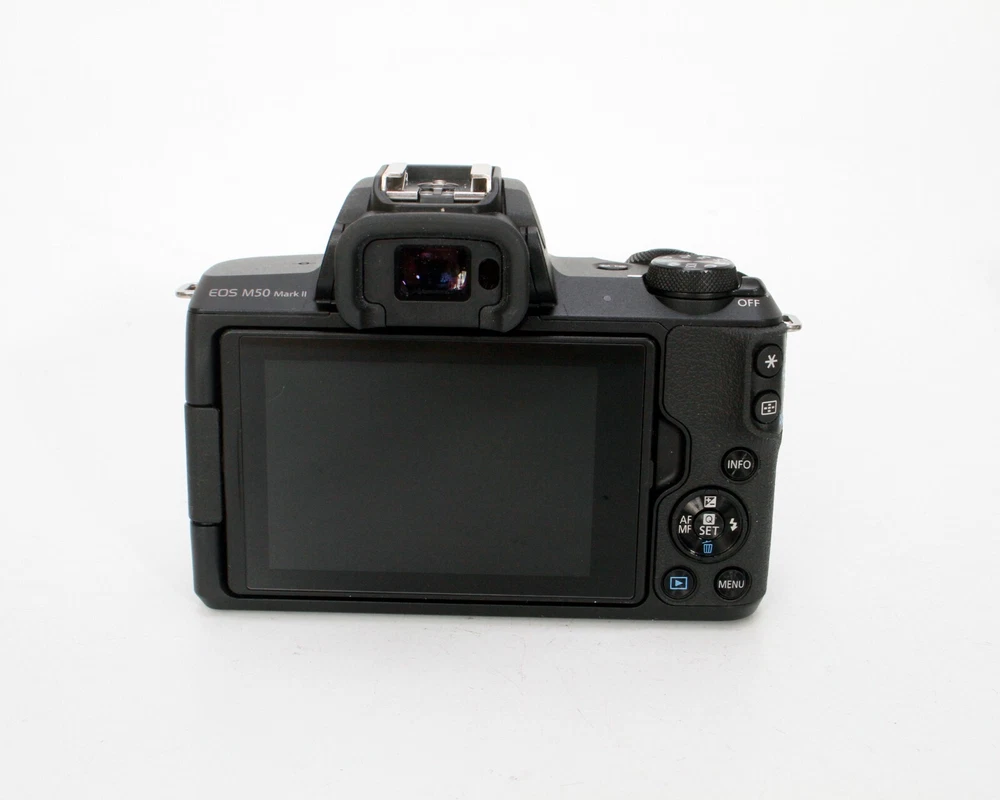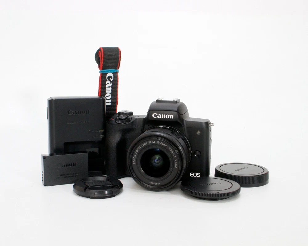 Canon EOS M50 Mark II 24.1MP Mirrorless 4K Camera, 15-45mm f/3.5-6.3 IS STM Lens Clean Mirrorless Camera Kit in Excellent Cosmetic Condition, LCD Screen in Excellent Condition Lens Glass is Free of Scratches and in Great Condition, All Kit Functions Tested Without Issue Fast One Day Order Processing for Speedy Delivery Sale Includes: Camera, Body Cap, Lens w/ Caps, Canon Battery & Charger Photos of Actual Items, Contact Me With Questions