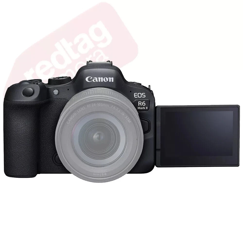 CANON EOS R6 MARK II MIRRORLESS DIGITAL CAMERA & RF 24-105MM F/4-7.1 IS STM LENS KEY FEATURES 24.2MP Full-Frame CMOS Sensor 4K60 10-Bit Internal Video, C-Log 3 External 6K ProRes RAW Recording Dual Pixel CMOS AF II 12 fps Mech. Shutter, 40 fps E. Shutter Sensor-Shift 5-Axis Image Stabilization 3.69m-Dot OLED EVF 3" 1.62m-Dot Vari-Angle Touchscreen LCD Dual UHS-II Memory Card Slots Multi-Function Shoe, Wi-Fi and Bluetooth RF 24-105mm f/4-7.1 IS STM Lens PRODUCT OVERVIEW Canon EOS R6 Mark II camera, boasting a higher resolution than its predecessor, capture stunning photos and professional-quality video of people, nature, and wildlife with this Canon mirrorless camera. It features a full-frame CMOS sensor with 24.2 effective megapixels, letting you capture sharp, detailed images day or night, inside or out—even in low-light. DIGIC X image processing enhances camera performance and processes, including image stabilization, image processing, and video functionality, for crystal-clear images and video with minimal noise or grain. Capture dynamic action shots of athletes, wildlife, and vehicles in motion, or even facial expressions thanks to high-speed continuous shooting with electronic shutter speeds of up to 40 fps at 20MP. What's more, improved subject detection not only detects people, small animals, cars and motorcycles, but now horses, trains, and aircraft. And, with advanced head, eye, and face detection whether people or animals, this digital camera instantly brings out the best in all of your subjects. Record uninterrupted video with up to 6 hours of continuous Full-HD video recording, and capture 6K oversampled uncropped 4K movies up to 60 fps or Full-HD high-frame rate video at up to 180 fps without overheating. Enjoy seamless wired and wireless smartphone connectivity with the USB Type-C9 port, built-in 5GHz Wi-Fi, and Bluetooth 5 technology, making it easy to upload and share photos and movies to your favorite social networks. The 3.0-inch, 1.62 million dot Clear View LCD Vari-angle Touchscreen makes it easy to compose the perfect shot from nearly any angle, making it perfect for on-the-go shooting. Capture clear shots consistently with this Canon RF 24-105mm f/4-7.1 IS STM standard zoom lens. This versatile zoom lens has a variable aperture range to suit numerous shooting needs. It also has a compact design to keep it streamlined and easy to bring around. This Canon RF lens has a Specialized Center Macro Focus setting for shooting objects at a 1:2 maximum magnification ratio, as well as an Optical Image Stabilizer to minimize camera shake by up to five stops. Shoot macro and highly detailed close-ups confidently as the Canon RF 24-105mm lens will yield crisp and sharp images. This lens features a Configurable Control Ring can be used to adjust a variety of exposure settings, including aperture, ISO, and exposure compensation. It also has Canon’s proprietary STM motor for fast, precise, and quiet autofocusing and manual focus override. BOX INCLUDES Canon EOS R6 Mark II Mirrorless Camera Canon RF 24-105mm f/4-7.1 IS STM Lens Canon LP-E6NH Lithium-Ion Battery Canon LC-E6 Charger for LP-E6 Battery Pack Canon R-F-5 Camera Cover Camera Strap Shoe Cover