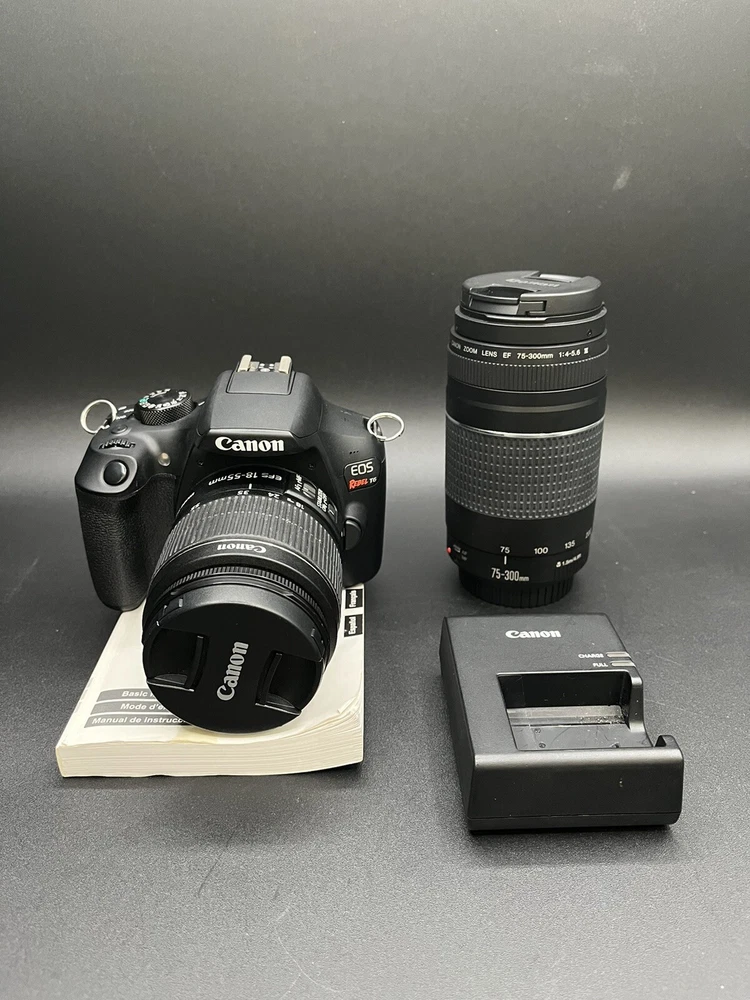 Comes in great condition only used for a handful of photos. Includes both lenses, a battery and charger as well as the booklet.