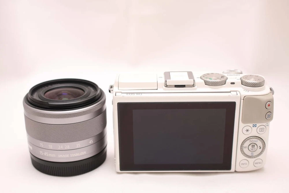 Canon Mirrorless SLR Camera EOS M3 Lens Kit White EF-M15-45mm F3.5-6.3 IS STM Product Description: 24.2 Megapixel CMOS (APS-C) sensor, ISO 100-12800 (expandable to H: 25600) and DIGIC 6 Image Processor can help capture photos and videos with stunning detail even in challenging lighting situations Hybrid CMOS AF III helps provide fast and accurate focusing for stills and videos Front Dial and Exposure Compensation Dial help provide full manual control and offer customizable functions as well as improved operability and ease of use Create Full HD 1920x1080 movies at 24p and 30p in MP4 format with ease using manual movie control Intuitive touch screen 3.0 tilt-type (180� up/45� down) LCD monitor (approximately 1,040,000 dots) can be perfect for selfies and allows for quick focusing and shooting, easy menu navigation and simple viewing of images and videos / Easily transfer images and videos to a compatible smartphone, tablet or Canon Connect Station CS100 device with built-in Wi-Fi and NFC capability, and share on social networking sites or view on an HDTV / Compatible with EF-M lenses as well as the full line of. Compatible Mountings Canon EF-M Aspect Ratio Unknown Photo Sensor Technology CMOS Supported File Format MP4 Image Stabilization Optical Maximum Focal Length 55 Millimeters Optical Zoom 4.6 x Maximum Aperture 38 f Expanded ISO Minimum 100 Metering Description Center-Weighted Average, Evaluative, Partial, Spot On Feb 13, 2025 at 04:31:51 PST, seller added the following information: