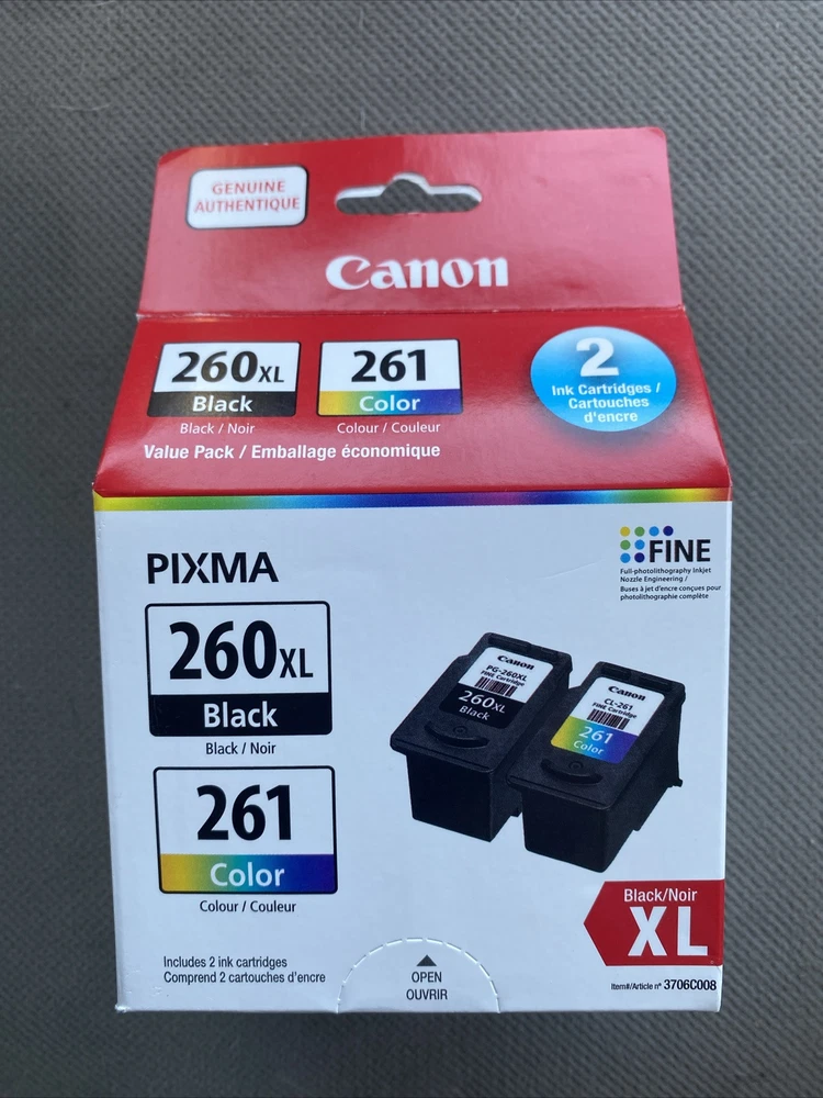 Canon 260/261 XL Ink Cartridge 260 Black XL / 261 Color XL Sealed New OEM Pixma