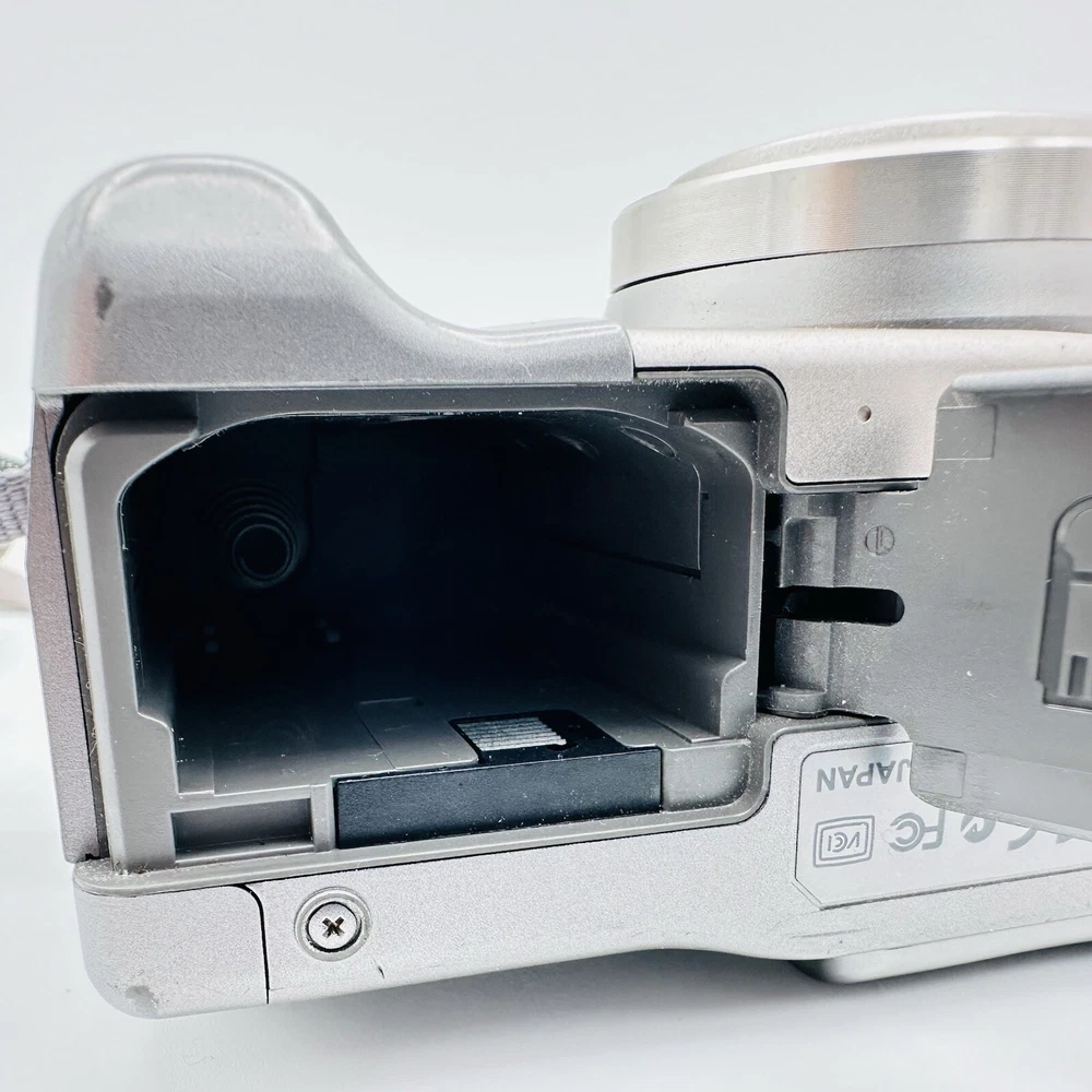 Camera is tested and working (Please See Video) Original batteries hold a charge for a very short time. Battery replacement is needed. Camera has wear with surface scratches with crack and plastic piece missing on memory card door (Please See Photo) Neck strap has wear with camera logo wearing away. Please Review All Photos. Please feel free to ask any questions that you might have regarding this item I am more than happy to answer them. Combine Shipping is Available! Global Shipping is Available! Not responsible for Import Fees on International Shipping. Also Be sure to check out some of my other listings