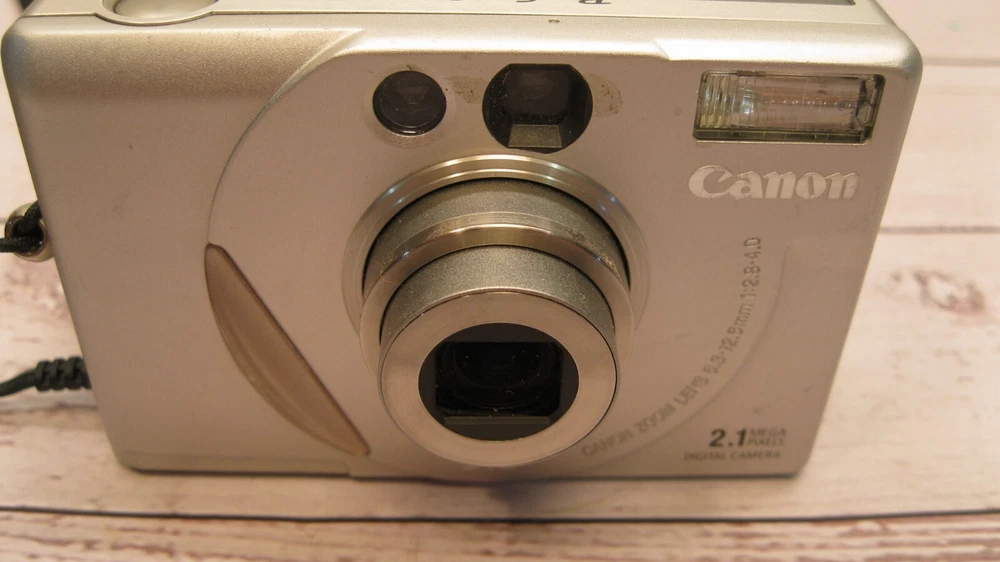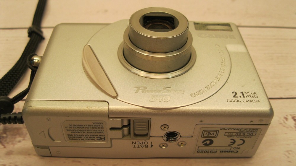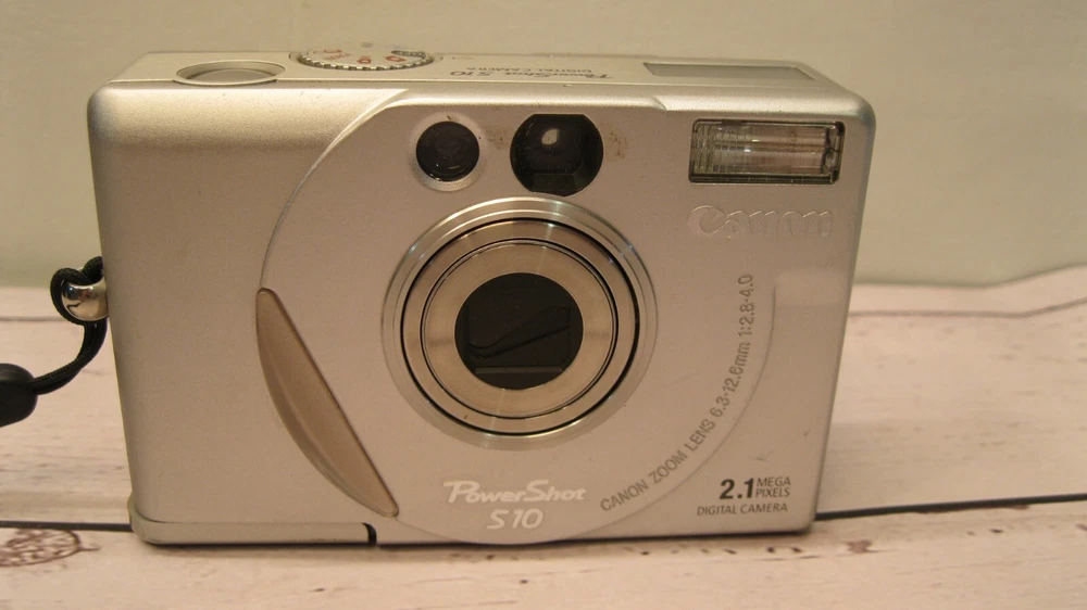 1. This compact Canon PowerShot S10 still delivers crisp 2.1MP photos with vibrant colors despite its age. The lightweight silver body feels sturdy, and it powers on perfectly—great for vintage digital camera collectors. Just need to grab a battery and memory card to start shooting!