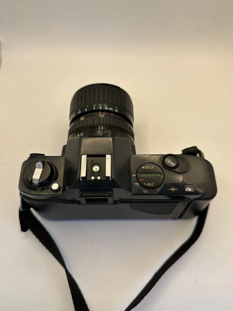 Capture memories with this classic Canon T50 35mm SLR Film Camera. Equipped with built-in light meter, auto exposure, and an electric drive, this camera offers a range of features to help you take the perfect shot. The black body design is sleek and stylish, blending in with your photography gear. This unit is a reliable choice for film photography enthusiasts, whether you're a professional or amateur. With a focus type of manual, you have complete control over your shots. Made in Japan, this camera is a testament to the country's reputation for quality electronics. Don't miss out on the opportunity to own this iconic piece of photographic history.