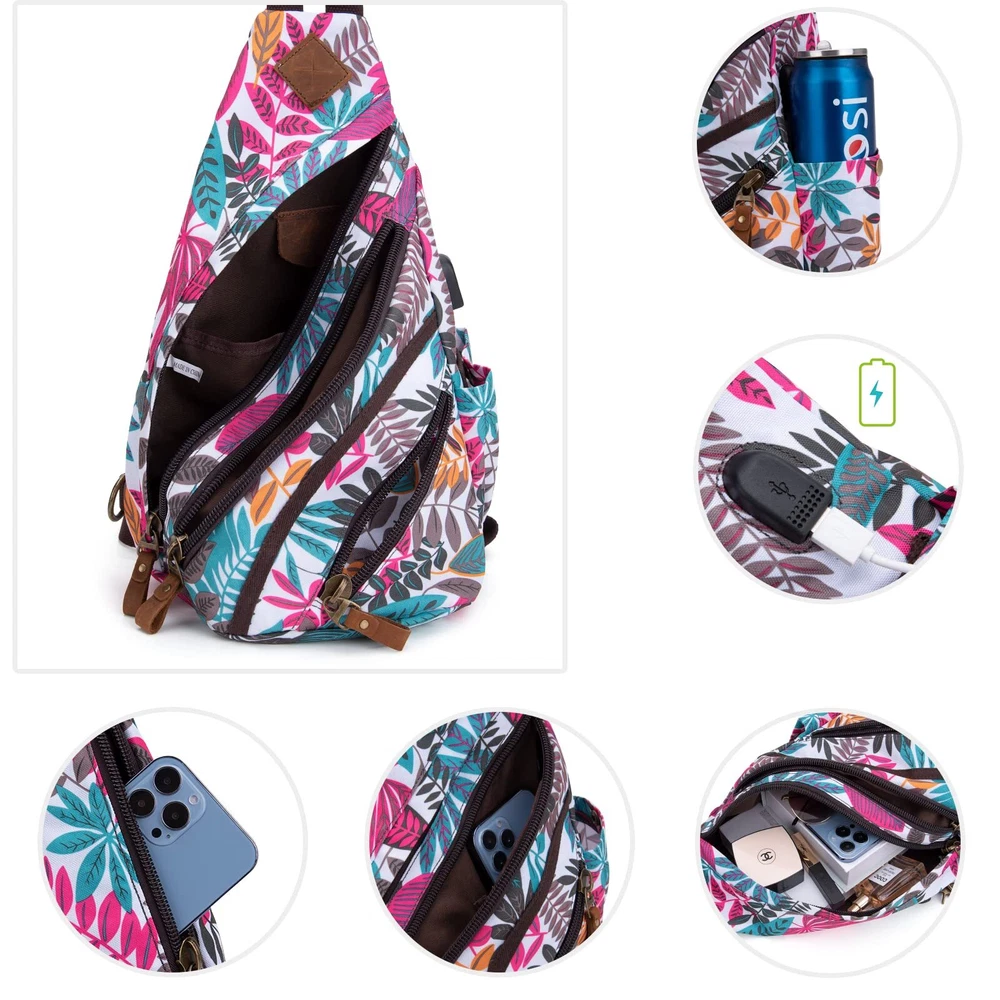Material: canvas + imported leather Color: colorful stripes/retro colors/English army green/khaki Structure: main bag/side bag Purpose: Backpack, backpack, school bag A backpack that can be carried by both men and women The bottom of the cowhide edging is made of imported cowhide cowhide bottom, which will bring you a more perfect experience High quality: Multifunction sling backpack With the zippered andadjustable straps, this sling bag can be used as a small backpack, youcan also wear it as a chest bag, a crossbody bag, etc. Size: Multi-purpose canvas cross body bag has plenty of space forgadgets, books, cell phones, umbrellas, water bottles, makeup cases,etc. It's very light and portable. Pocket&Water Bottle holder: This shoulder casual daypack has oneeasy-reach hidden anti-theft pocket which for your phone and othefrequently-used small but important things. Lightweight Design: Made of durable, lightweight, water-resistantcanvas material with top-quality zippers and brass fittings, the smallcrossbody backpack dimension: 10 X 7 X 16 inches, weights 1.11lb. Easy to carry around. Elegant Appearance: Unique and elegant appearance makes you themost attractive person when you wear it to riding a bike, walking,hiking, dating or other outdoor activity. Washable material and easy to clean.
