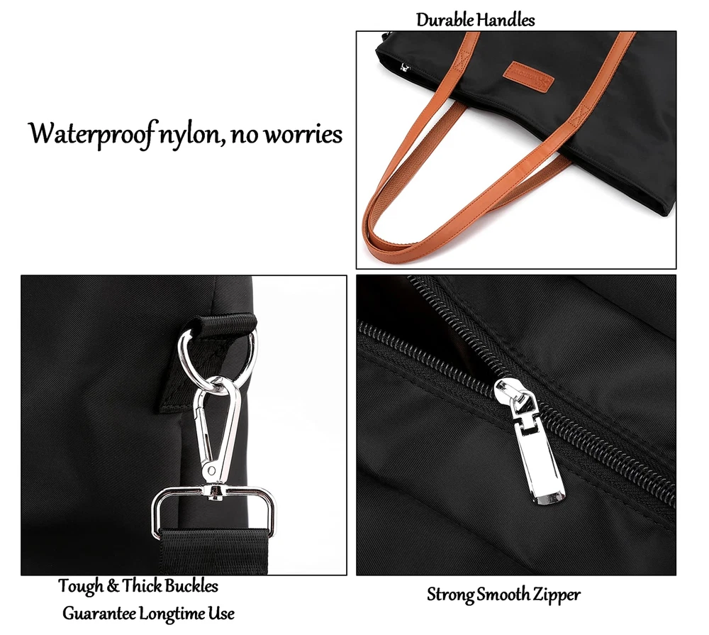 Multi-function Tote Bag-This work tote bag Is crafted from lightweight & water resistant Nylon, with a wide shoulder strap you can wear without creating discomfort on your shoulder. You can use it as handbags, teacher bag, school bag, leisure bag, travel bag, fitness bag and so on.It can every item is very orderly and convenient to access,just need a bag to hold your daily necessities,electronics,cosmetics,office supplies,and ease your hands.Fashion and Casual design:This tote is a perfect gift for full-time moms, teacher, nurse, college students. Excellent for shopping,traveling,working, cafes, school. Also great as a diaper bag. Easy Clean Waterproof 1680D Oxford Nylon: Strength but Lighter weight, top zipper closure,wear-resistant and anti-wrinkle. Multiple Pockets Easy Organization: Separate storage space can hold your things orderly. 1 padded compartment fits up to 15.6 inches(included 13/14 inch) laptop; 1 large main compartment for A4 magazines, iPad, books, umbrella, lunch box and more. 1 zippered pocket for wallet, business cards, or some other valuable items. 2 open pockets for cell phone, glasses, and mouse. Size: Laptop Tote Bag is 15.35 inch L x 7.08 inch W x 12.20 inch H. Spacious Fashion Laptop Bag designed specifically for women, can accommodate 15.6 inch laptops, including all sizes of tablet,soft and thick protective compartment Prevents accidental damage to the laptop. Versatile Purse: One bag to free your hands to hold your laptop other essentials. 3 ways to use - tote bag, handbag and crossbody bag, on the shoulder with the comfortable fully detachable wide cross-body strap which remains chic through any occasion. Stylish Tote Handbag: Handle drop is 11.4 inch , help you for a comfier carry. Lightweight and pliable. You can take it anywhere, which is more suitable for work,,cafes,shopping, party,travel and other occasions. Great Gift for a Teacher, Nurse, College.