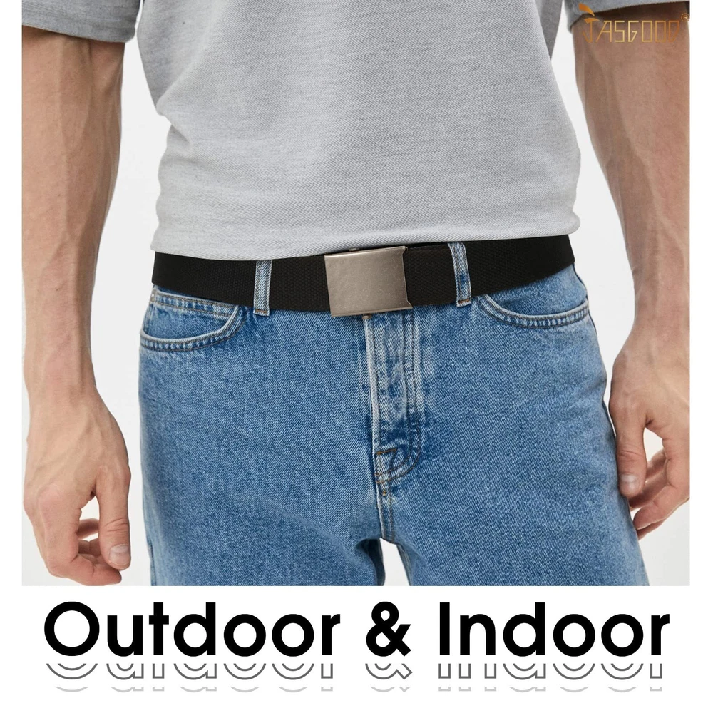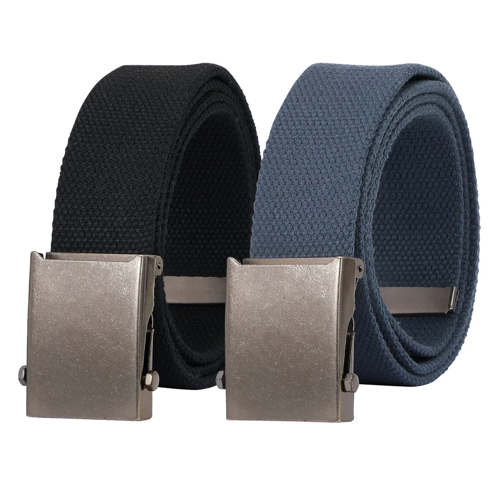 2 Pack Canvas Men Belts - Our military canvas web belt for men is made of breathable canvas cloth fabric. It is comfortable to wear. Classic Metal Buckle - The classic metal buckle is strong and durable, easy to put on and stay in place all day. It is a useful cloth fabric belt in daily life. Fully Adjustable Web Belts---No hole design makes you can adjust these canvas belts exactly the length you want instead of picking a notch. The Width of this men belt is 3.8cm/1.5inch. Size 1: 120cm/47inch, fit pant size up to 40". Size 2: 135cm/53inch, fit pant size up to 45". The greatest thing of this casual belt is that if the strap too long for you, you can cut it to size and exact fit. Occasion - This unisex canvas belt can be a casual or formal belt. It is great for jeans, shorts, pants,slacks,uniform. These men sport belt is suitable for outdoor activity like climbing, camping, traveling, golf, hiking. Considerate Service - Please feel free to contact us for any questions or service about our 2 pack men web belts. If for any reason you're not SATISFIED, contact us anytime, our after sale service team will make things right: full refund or a free replacement.