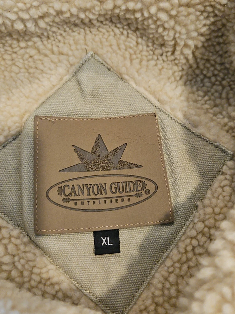 Canyon Guide Men's Sherpa Lined Canvas Trucker Jacket Button Up Size XL Tan Length: 27 in. Sleeve: 24 in. Clean/laundered to eBay standards.