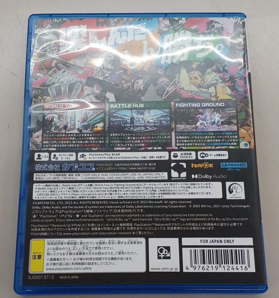 Capcom PS5 game Street Fighter 6 【This item includes applicable import fees. you won’t pay anything extra after checkout. Supported countries: USA only】 【Customs duties】 This item includes applicable import fees. you won’t pay anything extra after checkout. Supported countries: USA only (Does not include countries outside the United States) 【Item Description】 Because we have a large number of items, our product descriptions may be brief. The actual product will be exactly as shown in the image. Please feel free to ask any questions you may have before purchasing. 【Shipping】 Using standard shipping (Japan Post, FedEx or DHL), an estimated delivery date will be around 5-14 days after shipment. We send it with your tracking number, so that you can track the delivery status anytime. Shipping is only available to addresses registered on eBay. If you would like to send an item to a different address, please update your shipping address on eBay before you complete your purchase. 【Payment】 eBay's recommended payment methods are available. You will be able to pay with credit card, debit card, Apple Pay, Google Pay, or PayPal. 【For International Buyers(Excluding buyers from the USA)】 Import duties, taxes, and charges aren't included in the item price or shipping charges. These charges are the buyer's responsibility. Please check with your country's customs office to determine what these additional costs will be prior to bidding or buying. 【Caution】 Button/coin batteries can cause severe injuries or even death when swallowed. Keep batteries out of reach of children. If you suspect a child has swallowed or inserted a button/coin battery, seek medical attention immediately.