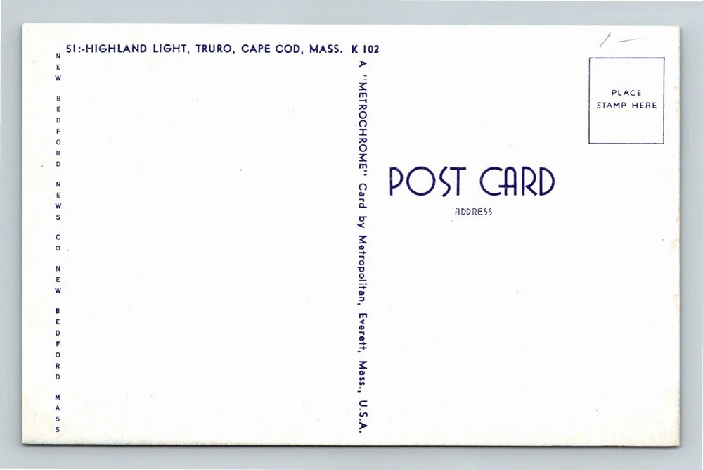 Cape Cod, MA-Massachusetts, Highland Light House, Vintage Postcard