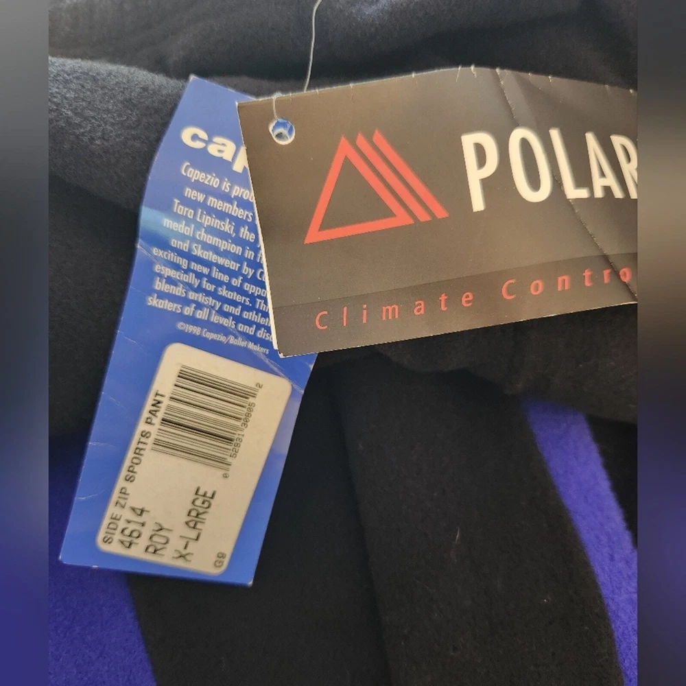 New With Tags Polartec Fleece full side zip ice skate warm pants from Capezio Size XL laying flat measurements in inches waist 15 rise 13 inseam 34