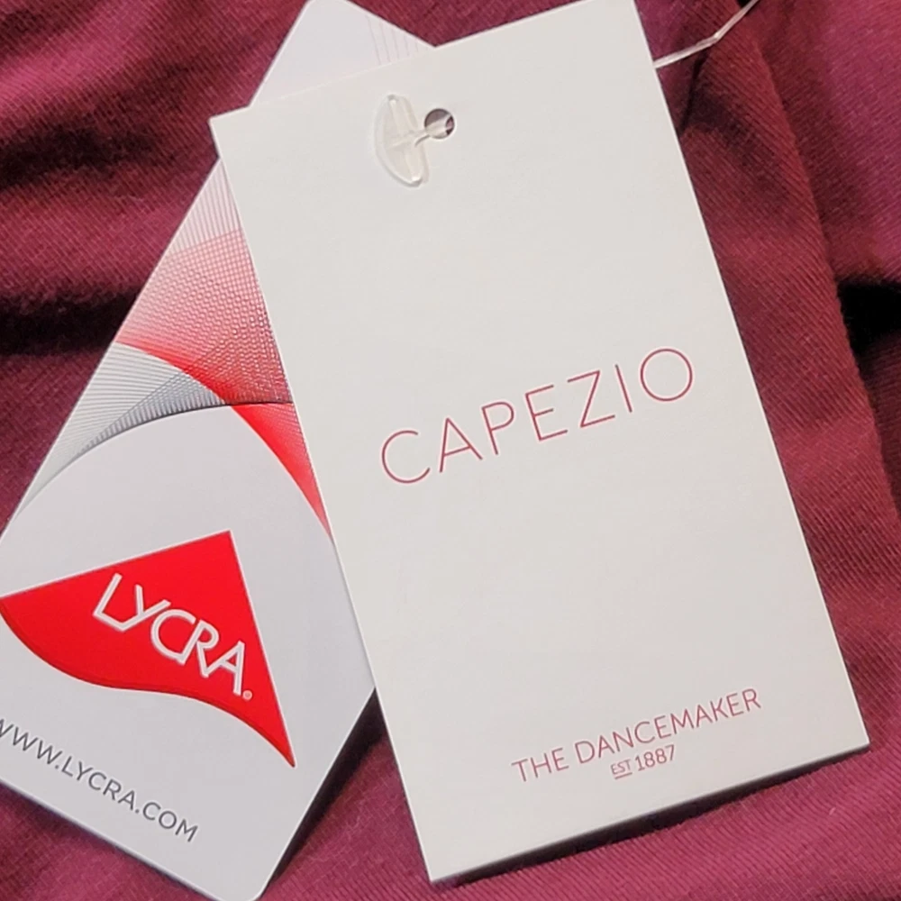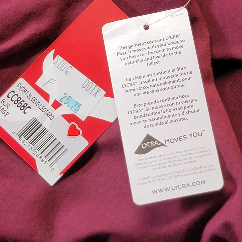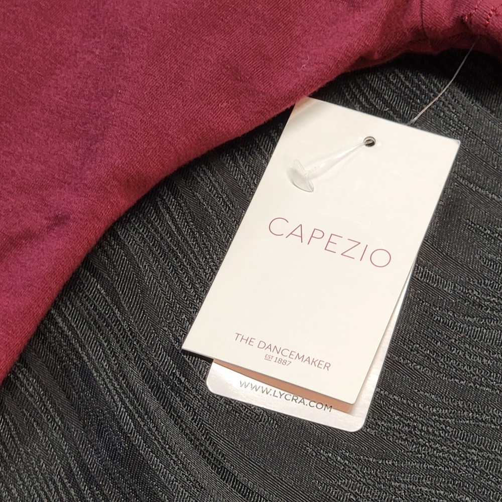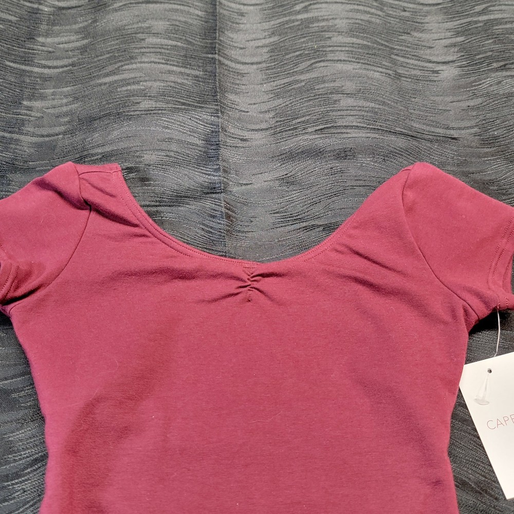 Size: L Brand: Capezio Country of Origin: China Material: Cotton Blend Color: Burgundy Sleeve Length: Short Sleeve Gender: Girls Personalize: No