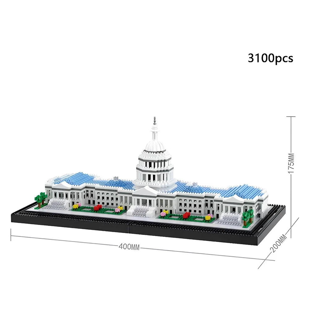 United States Capitol Building Blocks Set - 3D Puzzle - Construction Bricks Set - New Sealed without Box - 3100 Pcs. Feature ● Blocks model name: Building Blocks - Puzzle ● Fit for: 8 years and up. ● Blocks pcs: 3100 pcs ● Product Material: Eco-friendly ABS plastic, harmless to children's health. ● Condition: 100% Brand New. ● Packing content: 1 Building Blocks Set, and Detailed Paper Instructions Manual (The items packed in a bag, not in its box). Note: This is a high-quality, Chinese-origin, MOC Lego-compatible product. It is not an official Lego set or endorsed by Lego. Warning: ● Contains small parts, not intended children under 3 years. Plastic Block Shape Self-Locking Bricks Plastic Type ABS Warning Can not eat Material plastic Recommend Age +8y Origin Mainland China