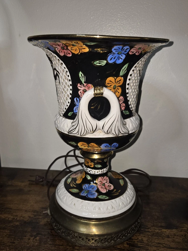 Finish: Painted Original/Reproduction: Original Style: Italian Era: 1950s Country/Region of Manufacture: Italy Type: Table Lamp Item Diameter: 12 in Brand: Capodimonte Material: Brass, Porcelain
