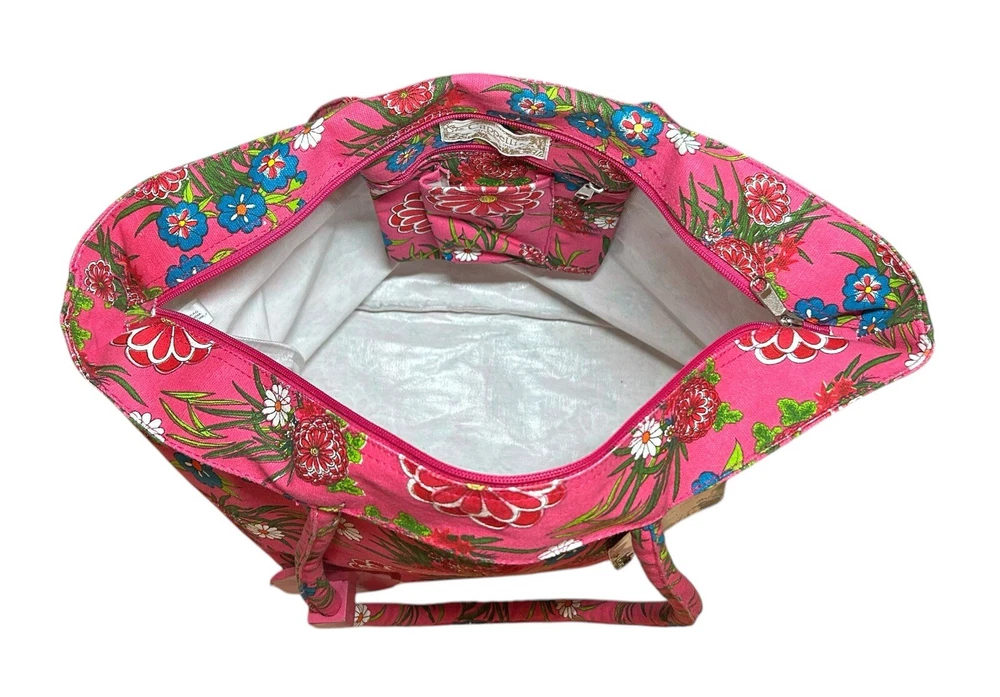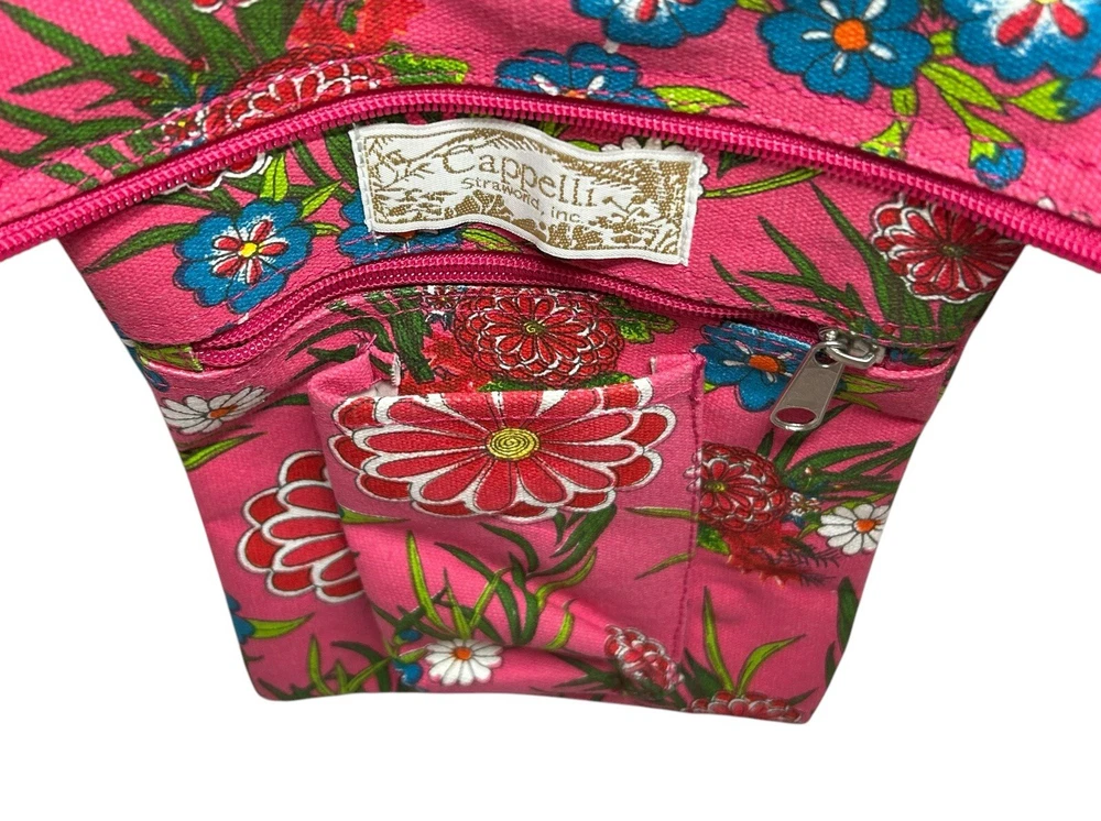 Cappelli Straworld Canvas Tote Bag Floral Handbag Beach Tote Bag Hot Pink NWT