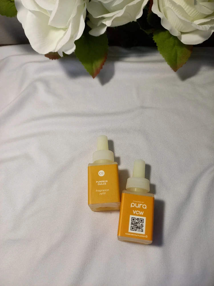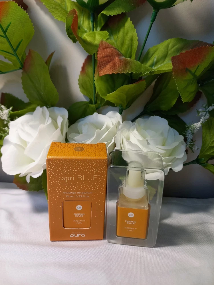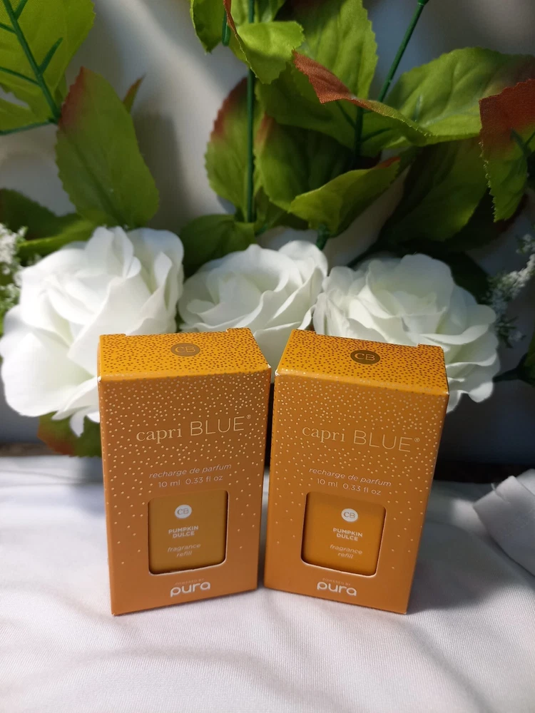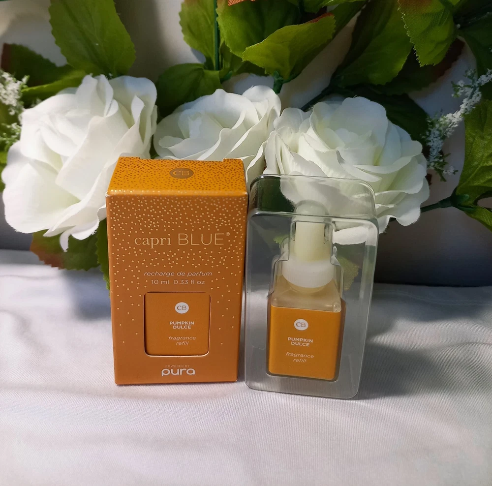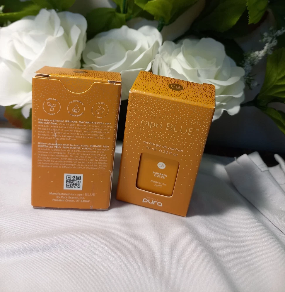The Capri Blue Pura Diffuser Refill 2-Pack in Pumpkin Dulce is a product designed for adults looking to add a pleasant scent to their living space. The refill pack contains two orange-colored pumpkin-scented diffusers for use with a Pura diffuser. The Pumpkin Dulce scent offers a warm and inviting fragrance, perfect for creating a cozy and comforting atmosphere in any room. Ideal for those who enjoy the aroma of pumpkin and want to enhance their home with a long-lasting and delightful fragrance.