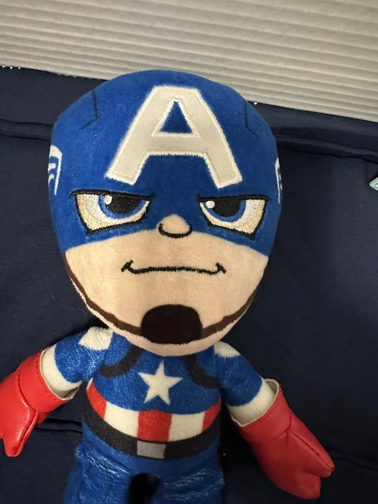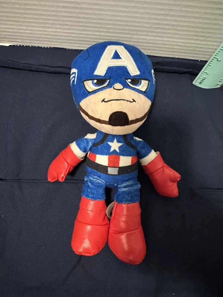 This 9-inch Captain America plush figure from Mattel is a must-have for any Marvel fan. With a surface washable design, this small toy is perfect for kids and collectors alike. The blue, white, and red color scheme makes it a great addition to any collection, and it is recommended for ages 3 and up. This officially licensed Marvel product is perfect for Captain America fans and collectors. It is made in China and features the beloved character from the 2021 line. The toy is small, measuring between 6-14 inches, and is ideal for kids and adults alike. Add this unique piece to your collection today!