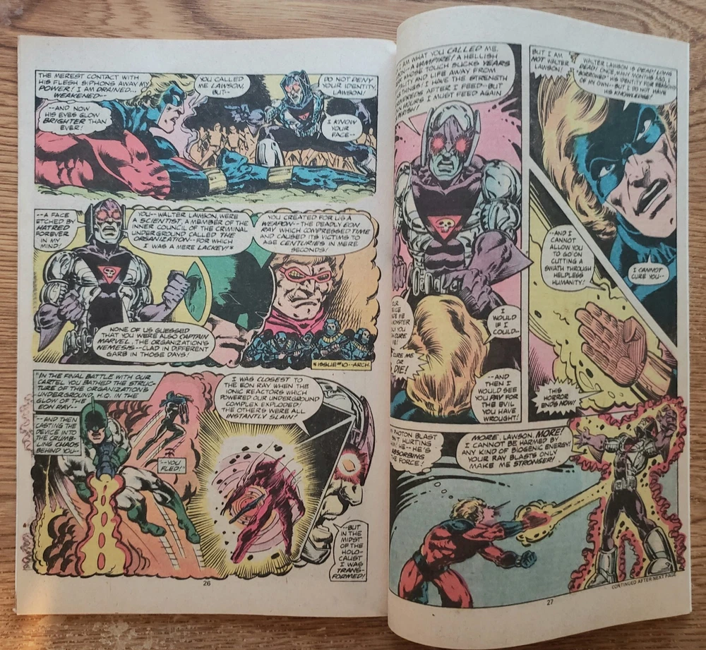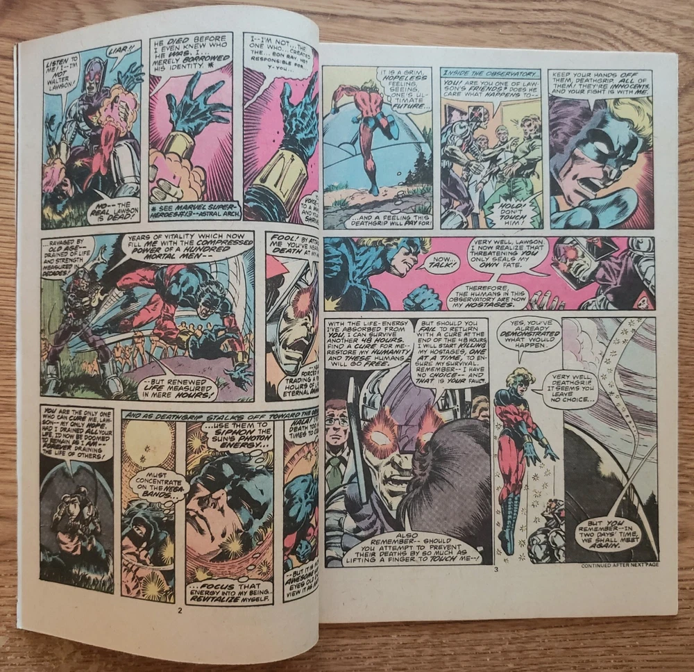 Country/Region of Manufacture: United States Publication Year: 1978 Language: English Personalized: No Cover Artist: Various Issue Number: 55,56 Format: Softcover Superhero Team: Avengers Features: First Printing, Boarded, Dust Jacket, Set, Vintage Paperback Universe: Marvel (MCU) Series Title: Captain Marvel Intended Audience: General Audience Story Title: The Doom Named Death-Grip! Genre: Action, Adventure, Cosmic, Superheroes Grade: 9.2 Near Mint- Publisher: Marvel Comics Ex Libris: No Type: Comic Book Unit of Sale: Unit of 2 Era: Bronze Age (1970-83) Artist/Writer: Various Style: Color Inscribed: No Vintage: Yes Tradition: US Comics Signed: No Character: Captain Marvel (Mar-Vell)