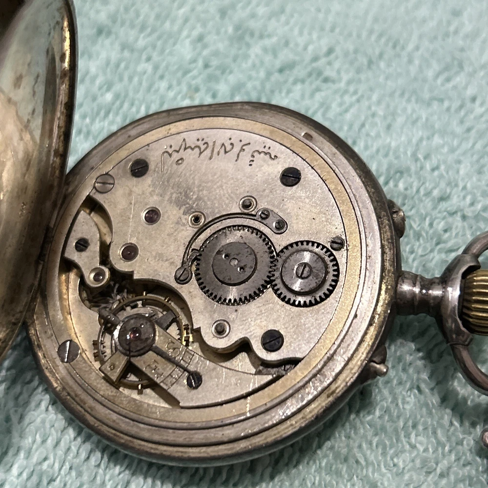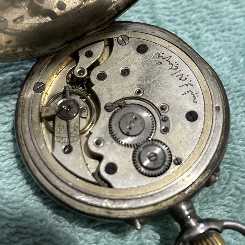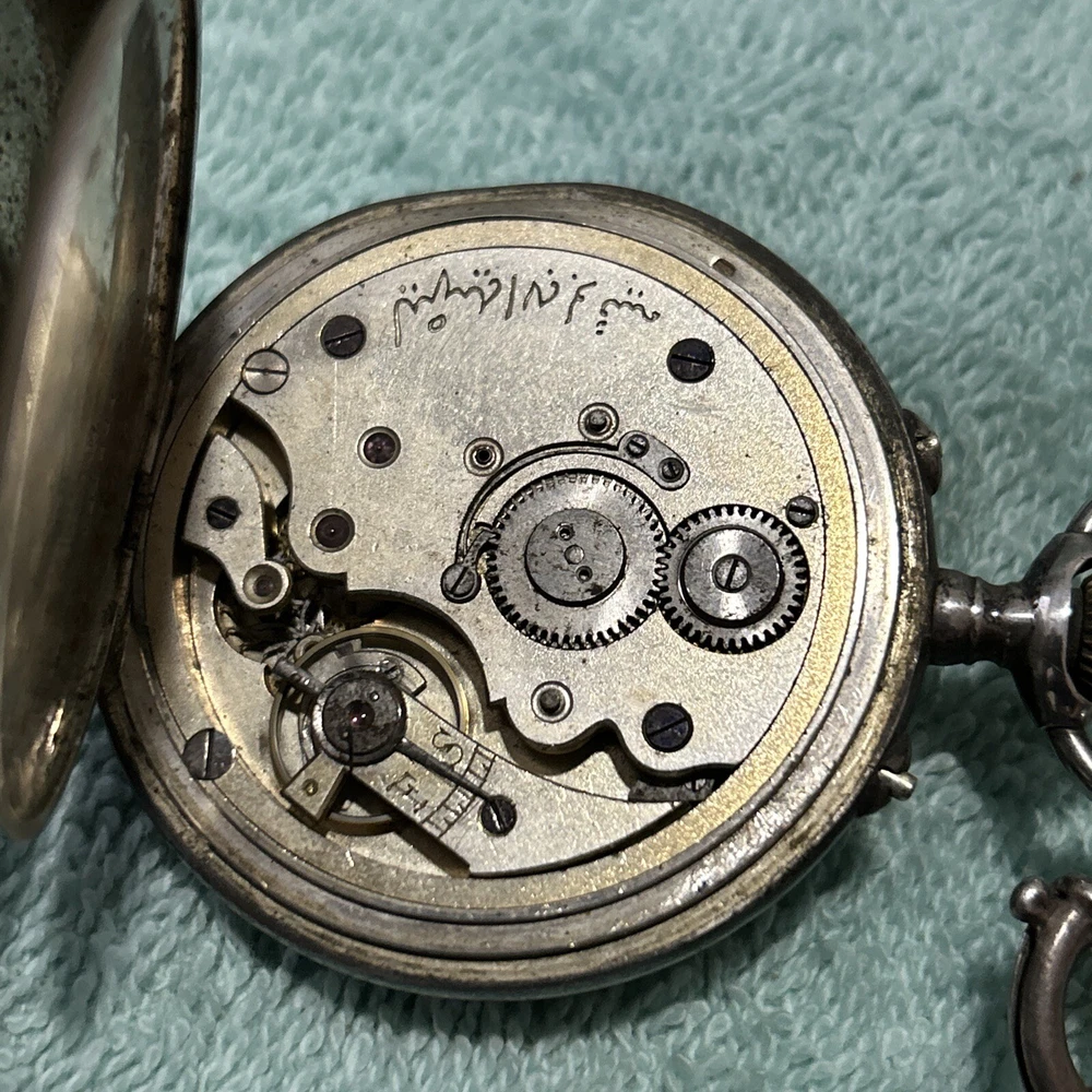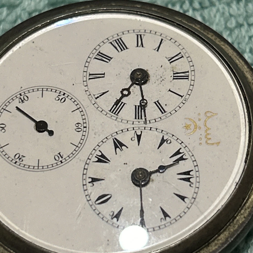 Captains Dual Time Zone Antique Pocket Watch. Working. Silver Case. Arabic Marke