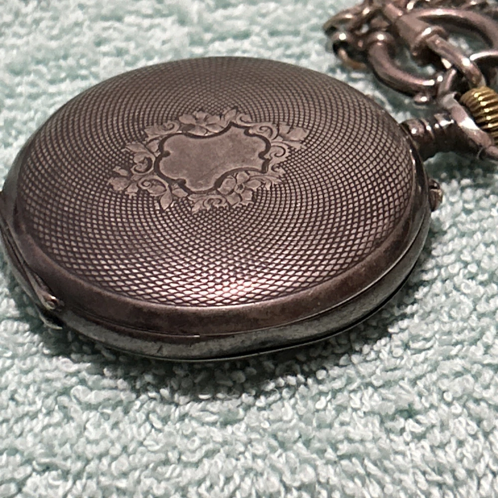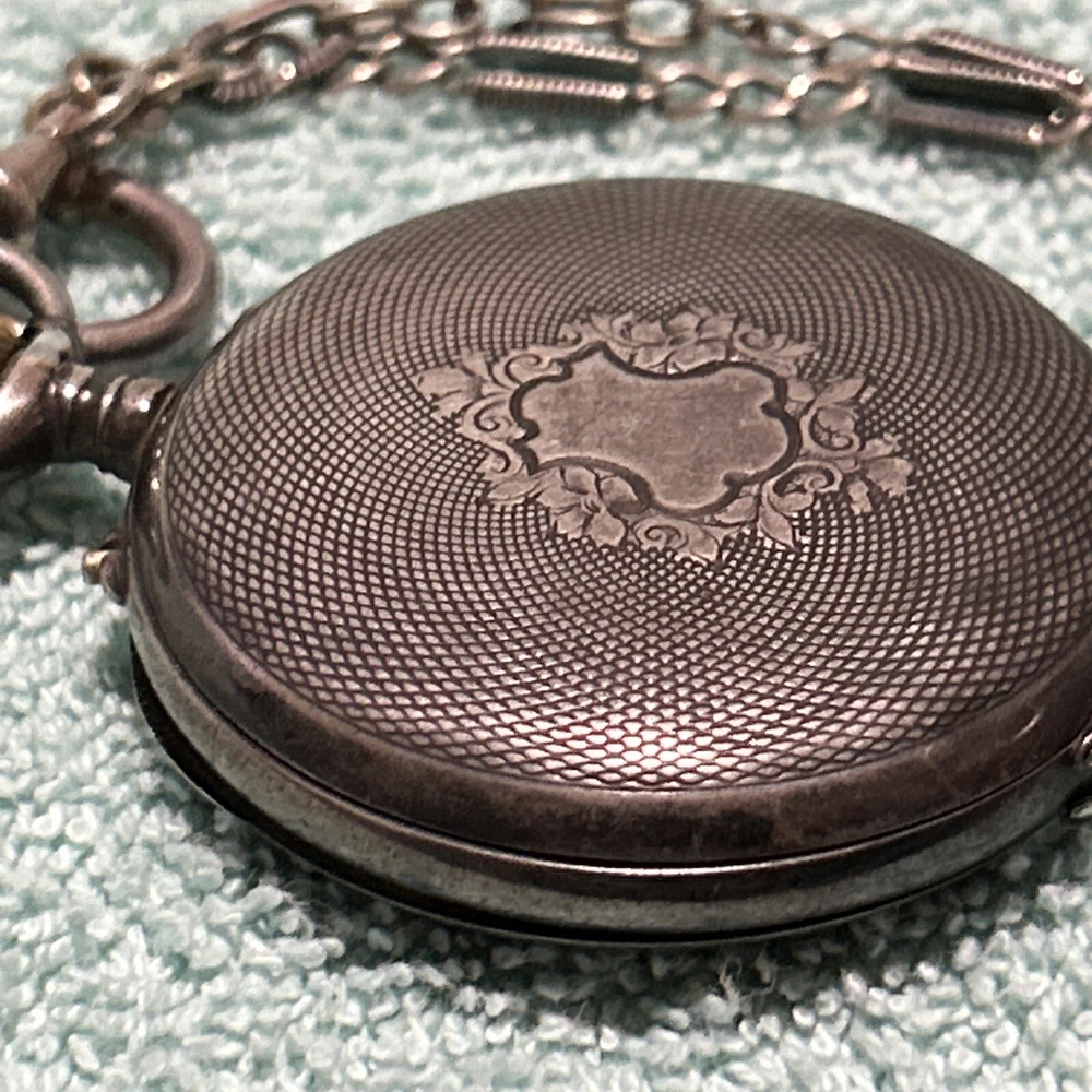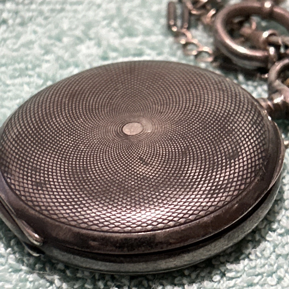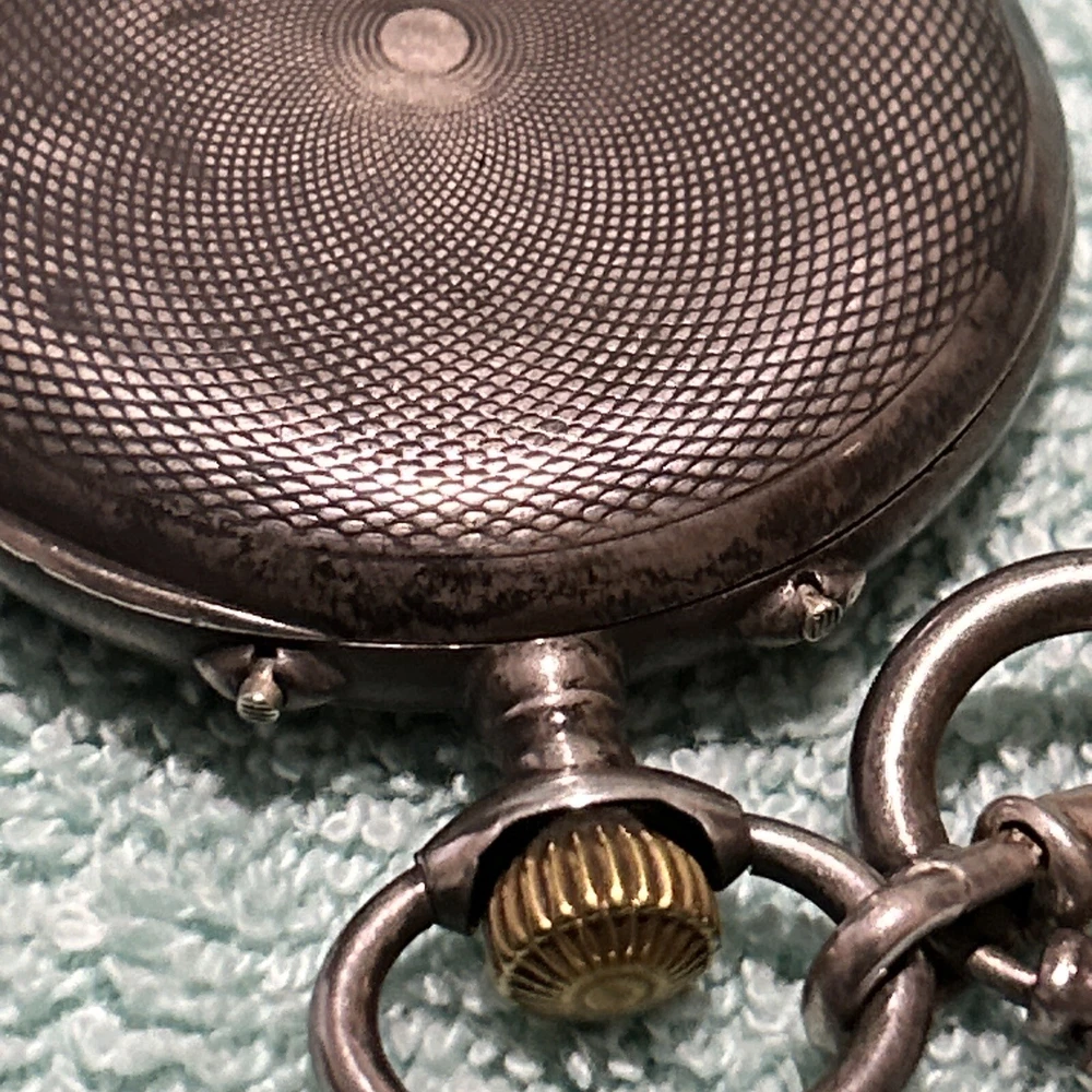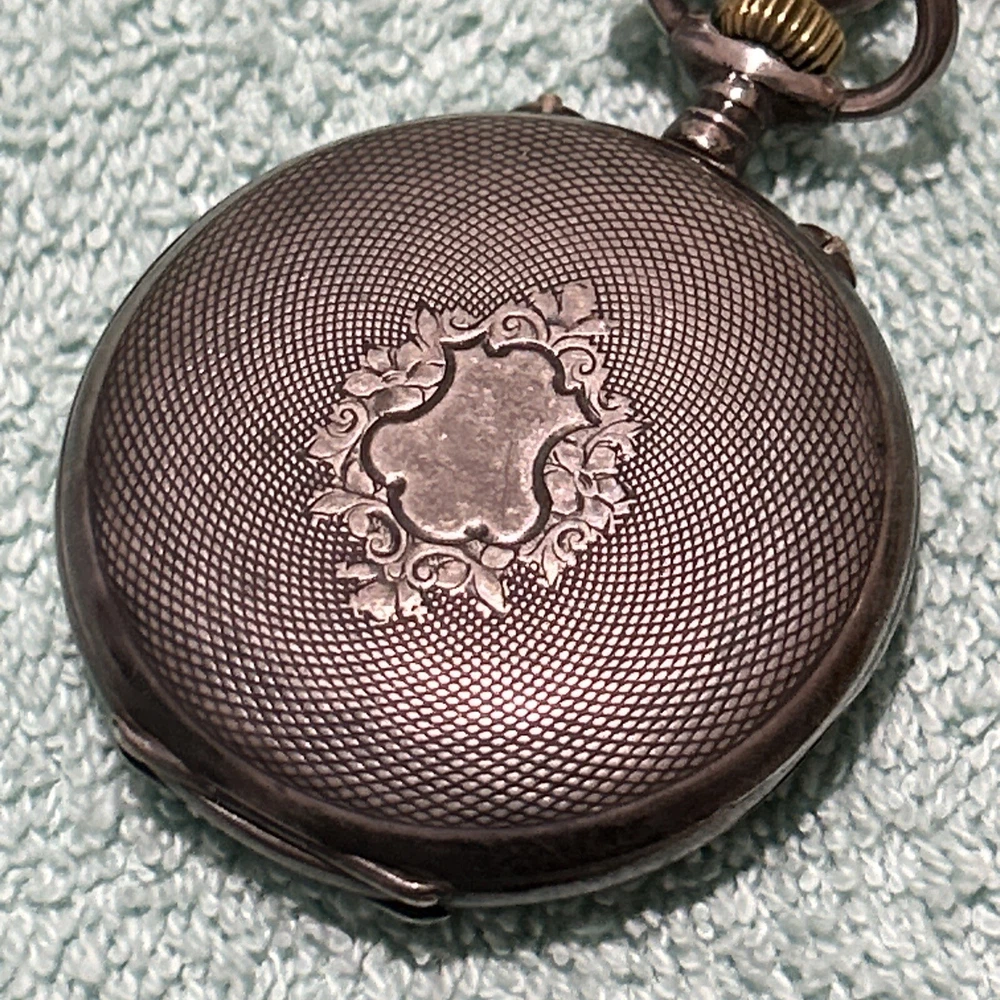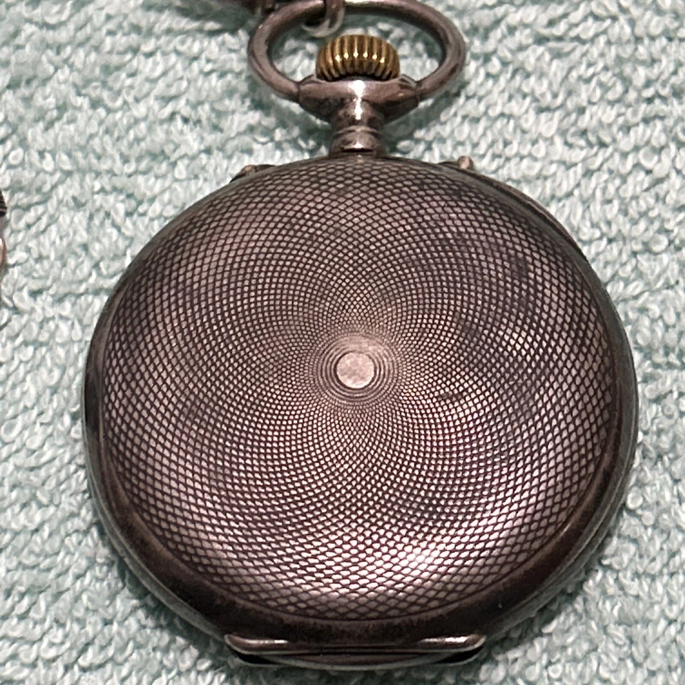 Pocket Watch Size: 16 Dial Color: White Country/Region of Manufacture: Unknown Movement: Mechanical (Manual) Case Color: Silver Vintage: Yes Type: Pocket Watch Brand: Antique Case Finish: Engine Turned Department: Men Closure: Double Hunter Caseback: Hinged Case Material: Silver Features: Dual Time Zones