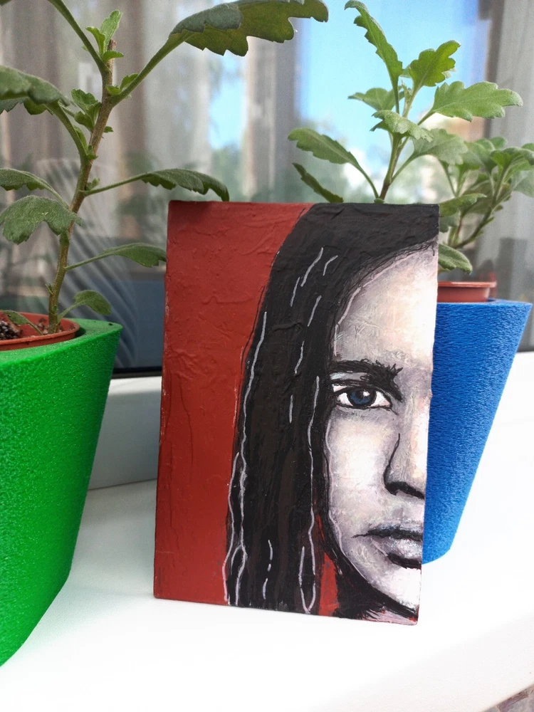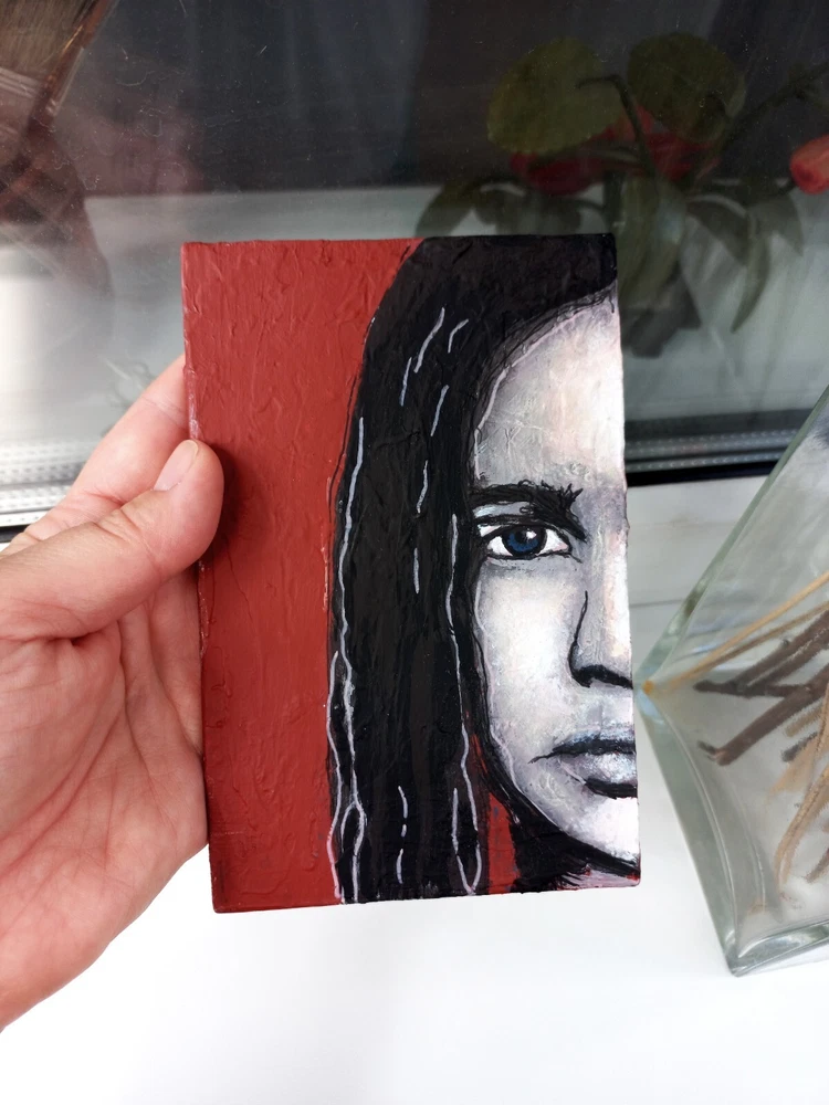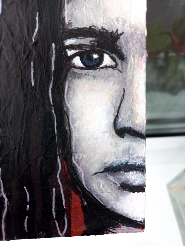 Hello art lovers! I'm thrilled to present my creation, a unique piece of contemporary art titled "Half of Me." About the Painting: "Half of Me" measures 6x4 inches (10x15 cm) and showcases a beautiful portrait of a young girl. The artwork is hand-painted on high-quality cotton canvas attached to cardboard, using acrylic paint and texture paste. This combination gives the piece a distinct, tactile quality, enhancing its modernist style. The portrait features a realistic approach, meticulously detailing the girl's face. The unique composition, which highlights only one half of her face, draws viewers into a moment of deep introspection, captured through the expressive detail of her visible eye and subtle facial features. This approach invites a sense of curiosity and reflection, suggesting a deeper narrative behind the serene yet intense expression. Handmade Original: This artwork is a handmade, one-of-a-kind piece, emphasizing my dedication to creating high-quality, original art. The use of texture paste along with acrylics adds a dimensional quality that makes the piece stand out. While the painting is unframed, this choice allows for a modern, raw presentation or the flexibility to frame it according to your personal taste. Please note that actual colors may slightly differ from what is seen on the screen due to individual screen settings, but the depth and emotion in the painting remain universally compelling. Ideal for: "Half of Me" is perfect for art lovers and collectors who appreciate contemporary, minimalist, and realistic art. This piece will make a striking addition to any collection, bringing a touch of sophistication and emotional depth to any space. Whether you're an experienced collector or new to the world of art, this painting offers a timeless appeal that will resonate with many. A Note on Colors: Please note that colors may appear slightly different due to varying screen calibrations.