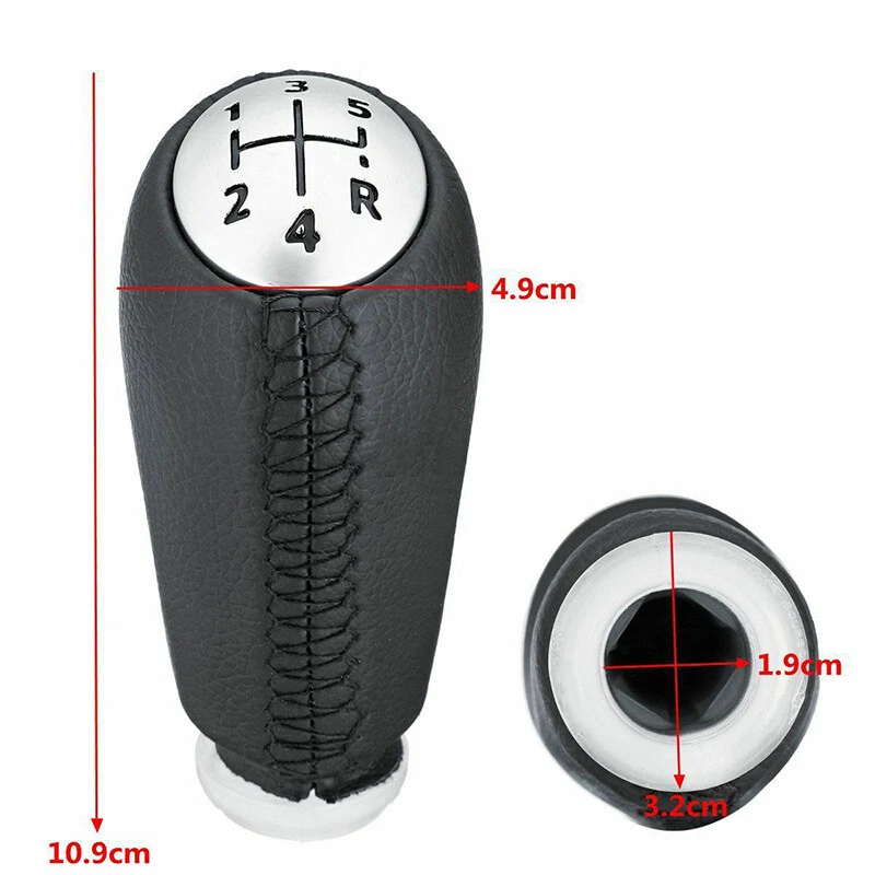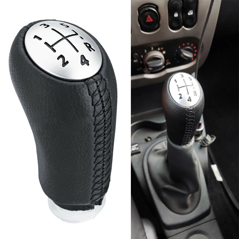 Specification: -Type: 5 Speed Gear Knob -Main Color: Black -Stitch Color: Black -Material: PU Leather, Plastic -Size: 4.9 x 10.9cm -Hole Diameter: 1.8cm Features: - Quality material, elegant and stylish look. - Comfortable grip & easy installation. - A perfect aftermarket replacement. Fitment: For Renault Clio III 2005-2009 For Renault Megane II 2002-2009 For Renault Scenic II 2003-2006 For Renault Kangoo 2009 Package included: 1 x Gear Shift Knob