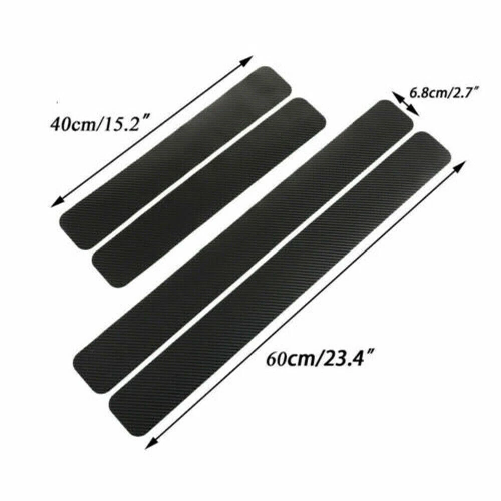 Features: 1.Product Name: car accessories door sill scuff welcome pedal threshold carbon fiber Protect Stickers 2.Material:3D carbon fiber(Not real carbon fiber ) 3.Package:4pcs per set (2pcs front door sill scuff cover+2pcs rear door sill scuff cover) 4.front door:60*6.8cm & rear door: 40*6.8cm 5.Applicable Car:Universal(Can be cut) Installation is very easy. Color: Black Packing Including: 4 x Carbon Fiber Sticker
