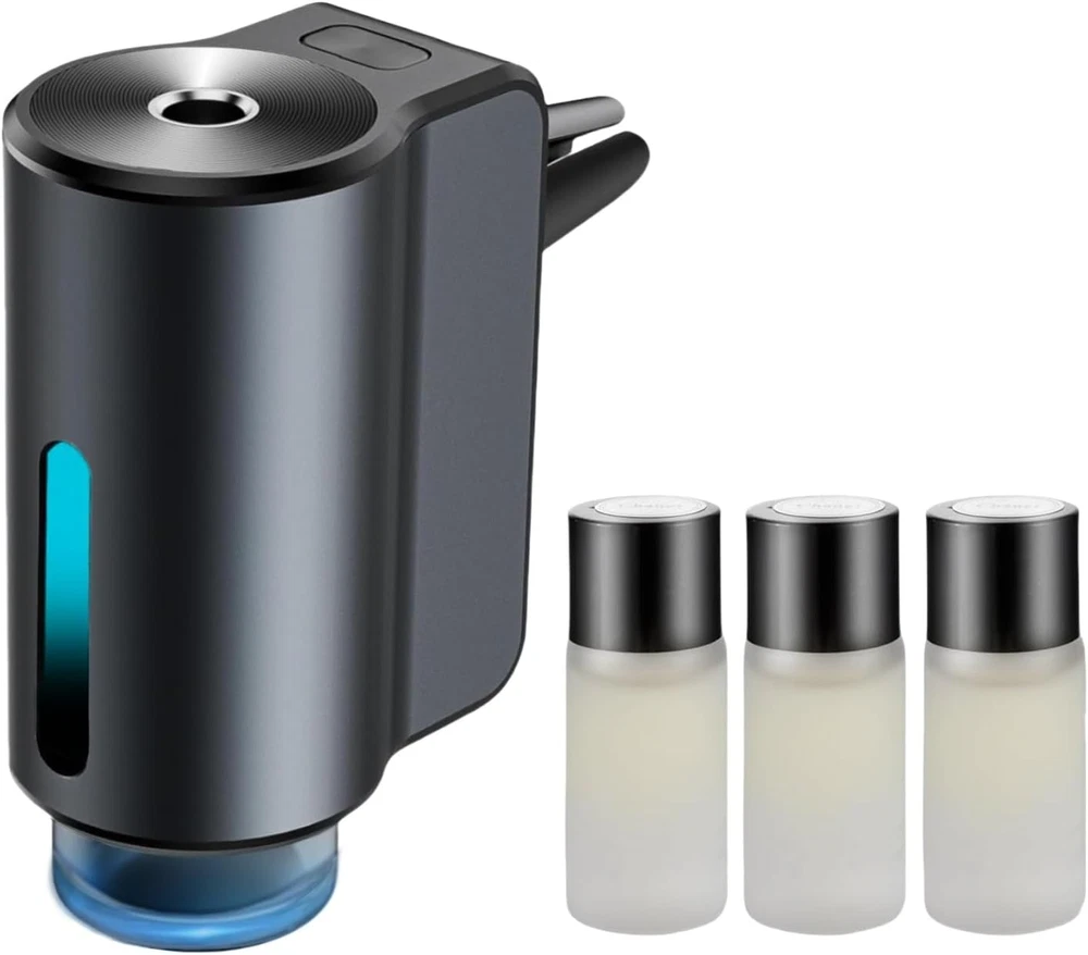 【Car Air Freshener Diffuser】The three-speed adjustable smart car air freshener can be adjusted and turned off freely. The car diffuser air freshener can also be turned on and off intelligently. This intelligent car aroma diffuser can be activated and deactivated, adjusting automatically by detecting the vehicle's running status to maintain a pleasant fragrance in the car. 【Three Spray Modes】The aromatizante para carro offers three modes: purple for a strong fragrance, spraying for 0.2 seconds every 10 seconds; blue for a normal fragrance, spraying for 0.2 seconds every 90 seconds; green for a light fragrance, spraying for 0.2 seconds every 300 seconds. Moreover, the car fresheners long lasting provides freshness. This is a highly intelligent ambientador para carro. 【Safe and Durable】Made of high-quality aluminum alloy material, the surface is sandblasted, making it strong and durable. The car fragrance that comes with this car oil diffusers is made from natural plant essence extracts. This car air freshener spray is safe. 【Easy to Use】This car spray freshener comes with a universal air clamp that can be easily attached to the air conditioning outlet. This difusor de aromas para carro is suitable for most vents, and its compact size makes it easy to place in the desired location for optimal car perfume diffusion. 【Exquisite Gifts】The auto air freshener is not only suitable for car interiors but also for bathrooms, bedrooms, pet rooms, etc. This car scent diffuser is also an excellent gift for your parents, sisters, friends, and brothers on Christmas, Halloween, Valentine's Day, and other holidays. Your family and friends will love this smart air freshener. Product Description
