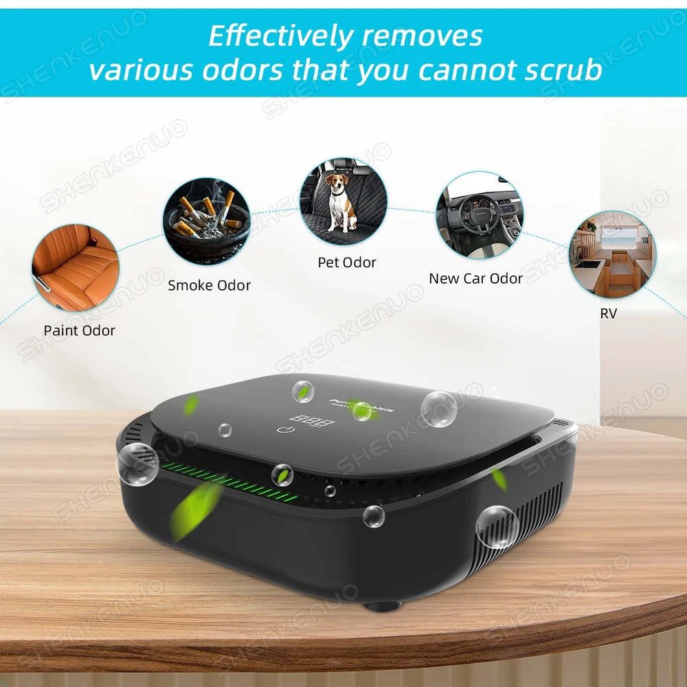 🚗 Enjoy fresh air and a pleasant ride. Tired of stuffy air, lingering smoke odors, or pungent “new car smell”? The Shenkenuo Car Air Purifier operates silently, automatically creating a fresher, healthier cabin environment for you. ✨ Key Advantages at a Glance: Instant Air Quality Monitoring Color-changing indicator displays real-time air quality (Good → Fair → Poor) Real-time PM2.5 monitoring for peace of mind Powerful Odor Elimination Effectively removes smoke, pet odors, food smells, and new car fumes Thoughtful Design: Built-in fragrance cartridge for on-demand scent Fully Automatic & Maintenance-Free Turns on and off with your vehicle. Plug it in and forget about it. Smart fan automatically adjusts speed based on air cleanliness. Powerful and Compact Purifies standard sedan air in just 3 minutes. Ultra-slim, streamlined design fits perfectly in any cup holder. Specifications & Compatibility: Suitable for: Sedans and SUVs (up to 22 square meters) Power Interface: Standard 12V car socket Package Contents: Air purifier, fragrance cartridge, user guide Upgrade your car's air quality now. Click “Add to Cart”! Specifications: Model: Smart Car Air Purifier Color: Black Power Mode: USB/Car cigarette lighter Rated Voltage: 2.5w 5v 50HZ Purification Space: up to 22㎡ Noise Value: <30dB Blast Capacity: 5.5CFM NW/GW: 0.75kg/0.8kg Product Size: 165*165*47mm Package Size: 270*210*55mm