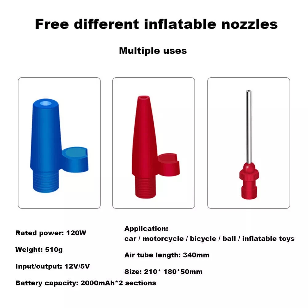 Set Includes: Air Compressor, Chaging Cable, Hose Adapter UPC: Does not apply Portable Fits: boys/girls/men/women Voltage: 12 V Color: Black Battery Model: 18650 lithium battery Portability: Portable gtin13: Does not apply Power Source: Corded Electric Maximum Working Pressure: 150 Psi Brand: Unbranded Type: Regulator