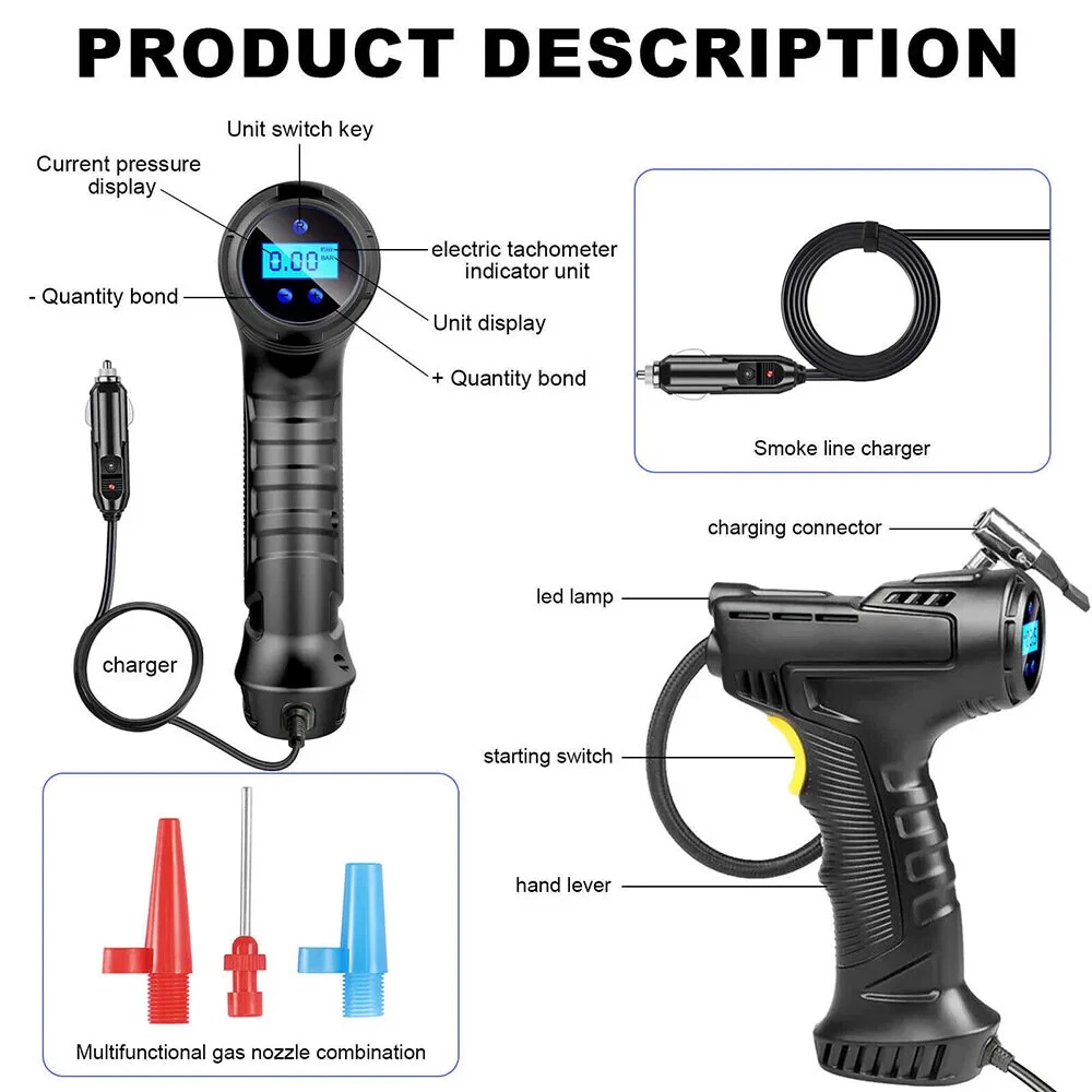 Car Air Tire Pump Inflator Compressor LED Digital Electric Portable 150PSI 12V