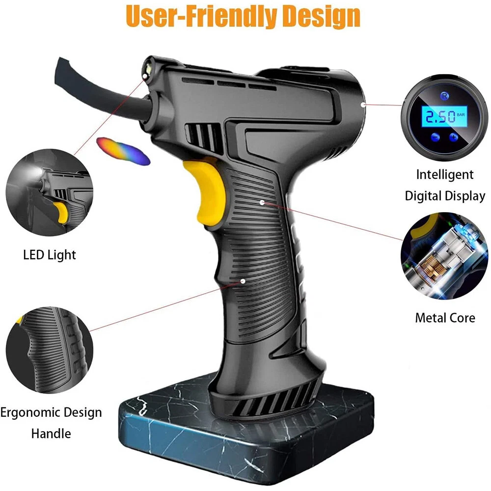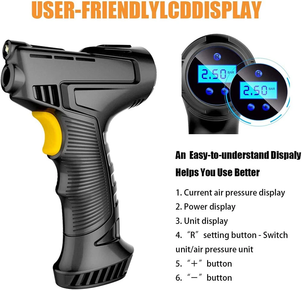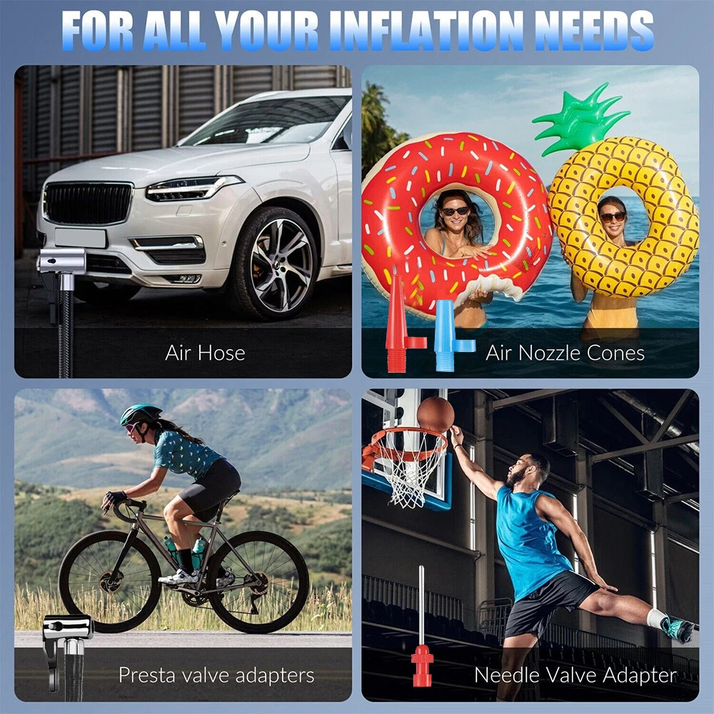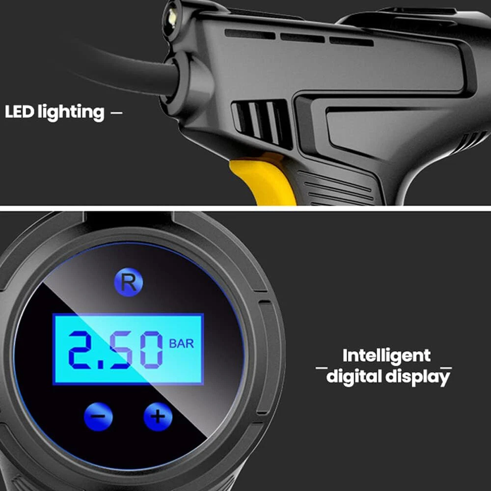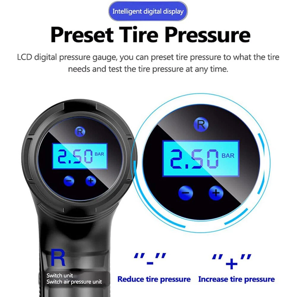 Car Air Tire Pump Inflator Compressor LED Digital Electric Portable 150PSI 12V Overview: What people may not realize is that a tire inflator can be a life saver. If you’re stranded in the middle of a snow storm and have a flat tire with no way to call for help, this 12v portable air compressor can inflate that tire and get you back on your way within minutes. You can set the pressure value manually between 0-150PSI and it will stop working automatically after reaching the set value. The 9.8ft charging cord can easily reach all tires easily. It’s not limited to car tire inflation, but also applied to bicycles, motorbikes, pools, balls, and so on. Features: Easy To Use & Auto Shut Off:First,start the car. Insert the cigarette plug into the socket and connect the inflation nozzle to the tire. Finally set the pressure and switch it on to start inflating. It will automatically power off after reaching the set value. 150PSI Max Working Pressure:With a maximum pressure of 150PSI and air flow of 20L/min,it can fully inflate a flat tire within 10mins. No need to worry about frequent cooling down with continuous working time reaching up to 22mins. The faster the tire inflator is,the faster you’ll be on the road. Digital Display & LED Lighting:Equipped with a high-brightness and high-precision display screen,you can easily check the tire pressure and pre-set the pressure value. The LED lighting makes operation more convenient in darkness. Portable & Convenient:With a size of 7.7x5x2in,it will not take up too much space when not in use. The 9.8ft charging cord can easily inflate all tires,making inflation more convenient. Multi-functional:Equipped with 3 air nozzles,it can also be applied to other inflation items,such as bicycle tires,balls,pools,mattresses,and so on. Note:Only suitable for suvs,cars,not for trucks,vans,or other oversize vehicles. Limited to DC 12V power supply. Specifications: Product Type: Portable Car Tire Inflator Working Voltage: DC12V Inflatable Flow: 20L/min Power: 120W Inflatable Tube: 36.5cm/14.4in Charging Cable Length: 3m/9.8ft Color: Black Material: ABS Maximum Pressure: 150PSI Inflation Time: 10Mins Continuous Work Time: 22Mins Item Size: 19.5x12.6x5cm/7.7x5x2in Item Weight: 420g Package Size: 16x21x6.5cm/6.3x8.3x2.6in Package Weight: 490g/1.1lbs Package Contents: 1 x Portable Car Tire Inflator 3x Air Nozzles 1x User Manual On Aug 7, 2024 at 21:54:05 PDT, seller added the following information: On Dec 8, 2024 at 23:49:36 PST, seller added the following information: