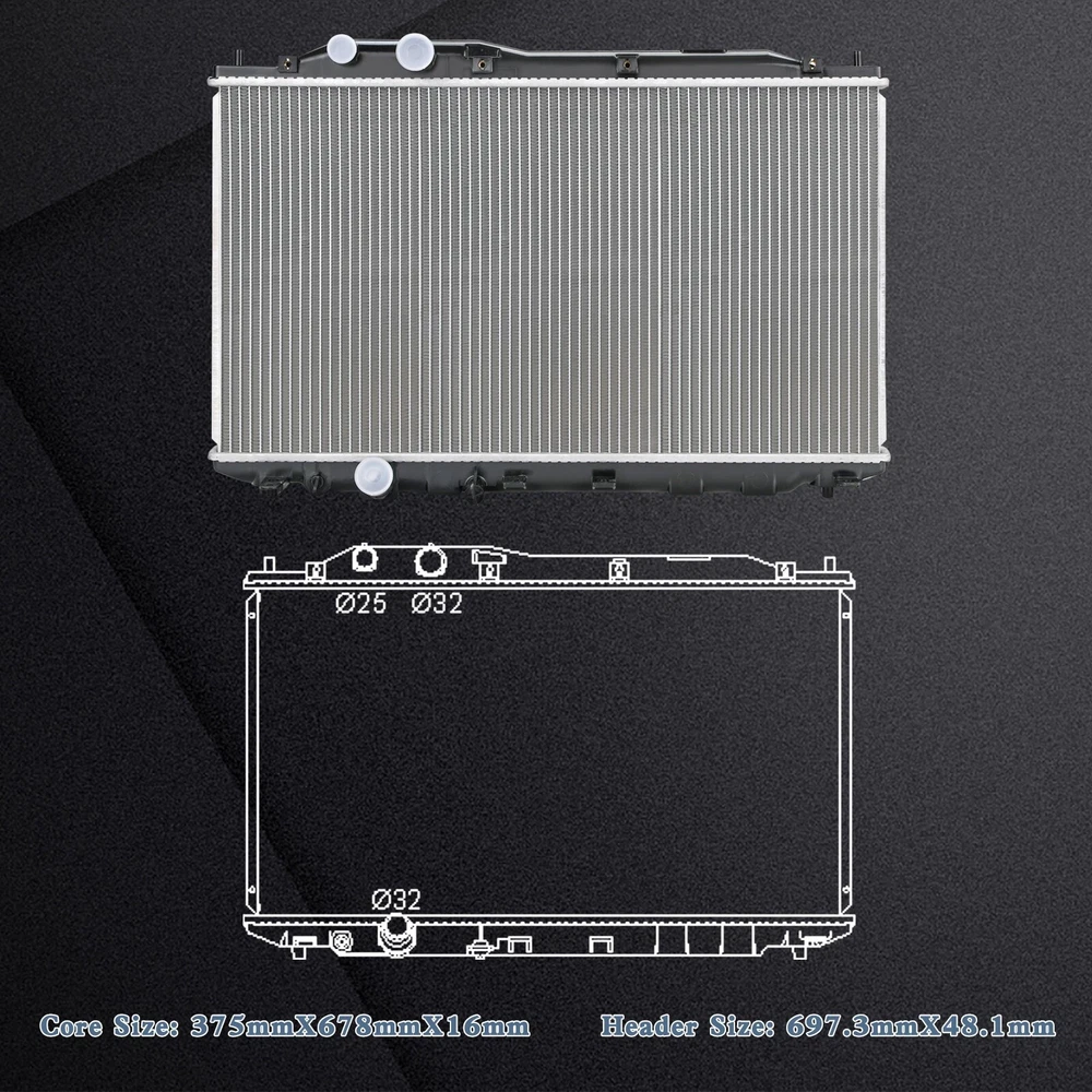 Fitment 2011-2011 Honda Civic 2.0L GAS 2006-2011 Honda Civic 1.8L CNG 2006-2011 Honda Civic 1.8L GAS 2006-2011 Acura CSX 2.0L GAS Specification Inlet Diameter(inch): 1.26 Outlet Diameter(inch): 1.26 Package Weight(kg): 3.77 Package Size(inch):length×width×height: 29.72x5.31x20.67 Core Size(inch): 14.76x26.69x0.63 Interchange Part Number: 2922 Row Count: 1 Core Material: Aluminum Tank Material: Plastic Fitment Type: Direct Replacement Color: Silver Core, Black Tank Radiator Cap: No Style: Downflow Compatibility: MT radiator, without radiator cap ISO Specification: ISO 16949 Features Perfect radiator direct replacing part for car engine cooling system. Radiator is really easy to get damaged during delivery. We have upgraded packaging (EPE foam and cardboard)to prevent aluminum fins, plastic water tank and fitting parts from damage. EPE foam helps fix radiators to reduce wobble. Regularly clean your radiator to prevent clogging that may lower cooling efficiency. Don't mix different brands of coolant. Before you start up your vehicle, please make sure there is coolant in the radiator. Highly recommended to check car cooling system of the whole vehicle before professional installation. We are willing to provide 1 Year warranty service. Highest grade plastic tanks with aluminum core - made to withstand rust and wear. Leak tested & Sealing tested, durable and long-lasting. Direct Bolt-on Replacement with No Additional Time. With plastic cover to prevent dust during delivery. Louvered core fins increase waterflow and accelerate heat transfer to keep your engine running cool. An aluminum core and durable plastic tank prevent rust and corrosion while also limiting weight and promoting longevity. Wider tube or dimpled tube surface increases contact surface area for more efficient cooling. Our radiator is suitable for standard vehicles, not for modified car/vehicles.