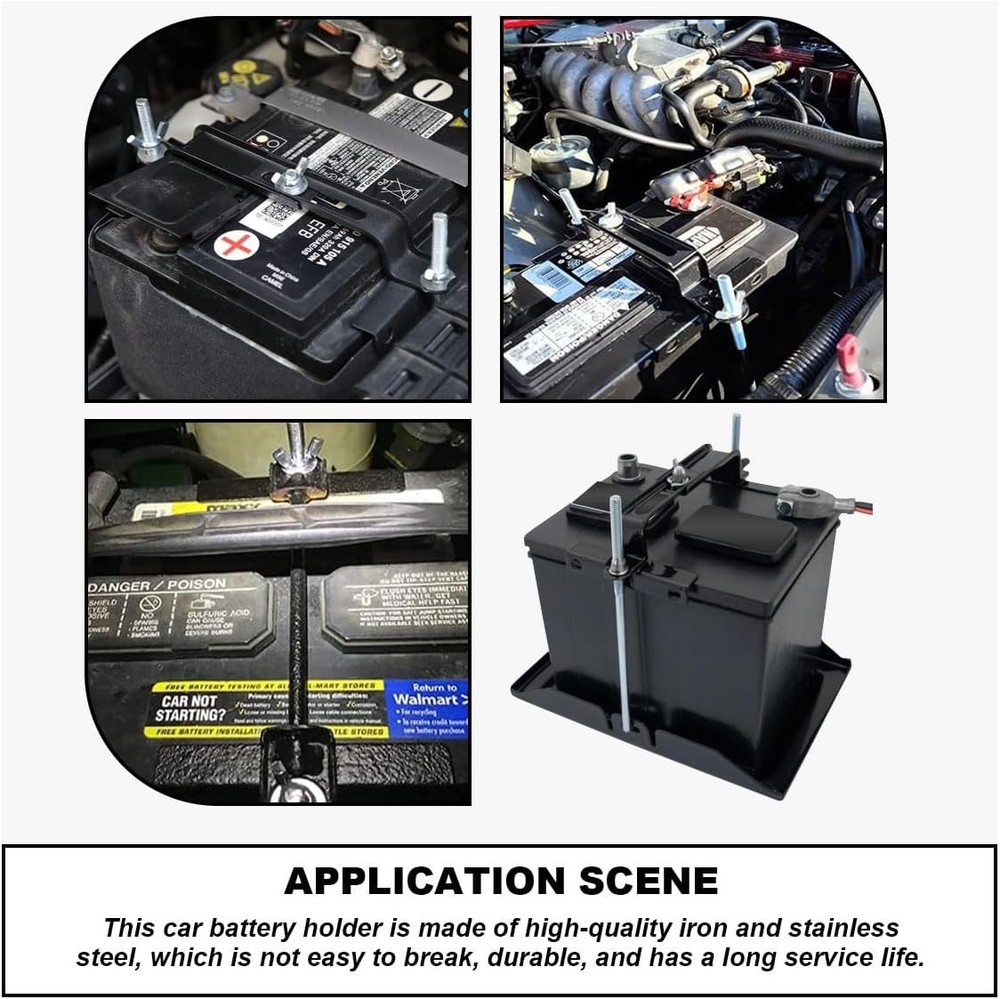 Free eBay listing template designed by dewiso.com Car Battery Hold Down Kit, Adjustable Battery Tie Down Holder, Universal Battery Crossbar with J Bolt, Auto Battery Hold Down Bracket, Car Battery Holder Kit for SUVs Cars Trucks (10.6"/270mm Bolt) FREE AND FAST SHIPPING! About this item 【high-quality Material】:The car adjustable battery holder is made of high-quality iron material, sturdy, rust and corrosion-resistant, wear-resistant, the surface is specially treated, smooth to the touch, and not easy to break or damage, for long-term use. 【Adjustable Design】:The universal battery holder for car features an adjustable battery crossbar and J-bolt, which can be adjusted in length or width according to your needs, convenient for you to fix the battery effectively, the bolt length is 10.63 inches, and the adjustment range is from 5.74 inches to 8.26 inches. 【Easy to Install】:This car battery holder kit comes with wing nuts and washers, convenient for you to install and remove easily, just adjust the height and width, and then hook the J bolts into the holes of the tray, match the washers and tighten the wing nuts to make sure that the battery is securely fixed. 【Applications】:The car battery holder is suitable for most cars, SUVs, trucks, RVs, boats and other vehicles, used to hold the battery to protect the battery from shifting or damage, and can hold almost most sizes of batteries. 【What You Get】:Includes 1 automotive universal battery holder, 2 J-hooks, 2 wing nuts, 2 washers. Lightweight, easy to carry and store. Note: Before purchasing, please check the size of the product to make sure it fits. Product We offer a 30-Day Return Policy on items which you are not completely satisfied with. You have the option for a full-refund or an exchange of the item. No returns are available on items shipped outside of the US . Shipping We offer Free Shipping to the US and ship within 2 business days of payment, usually sooner. We use UPS express shipping. That's why your products are usually delivered within 3 days . Contact We try our very best to make sure every customer is completely satisfied. If there's a problem , message us! We're happy to help. 24/7 live chat available.