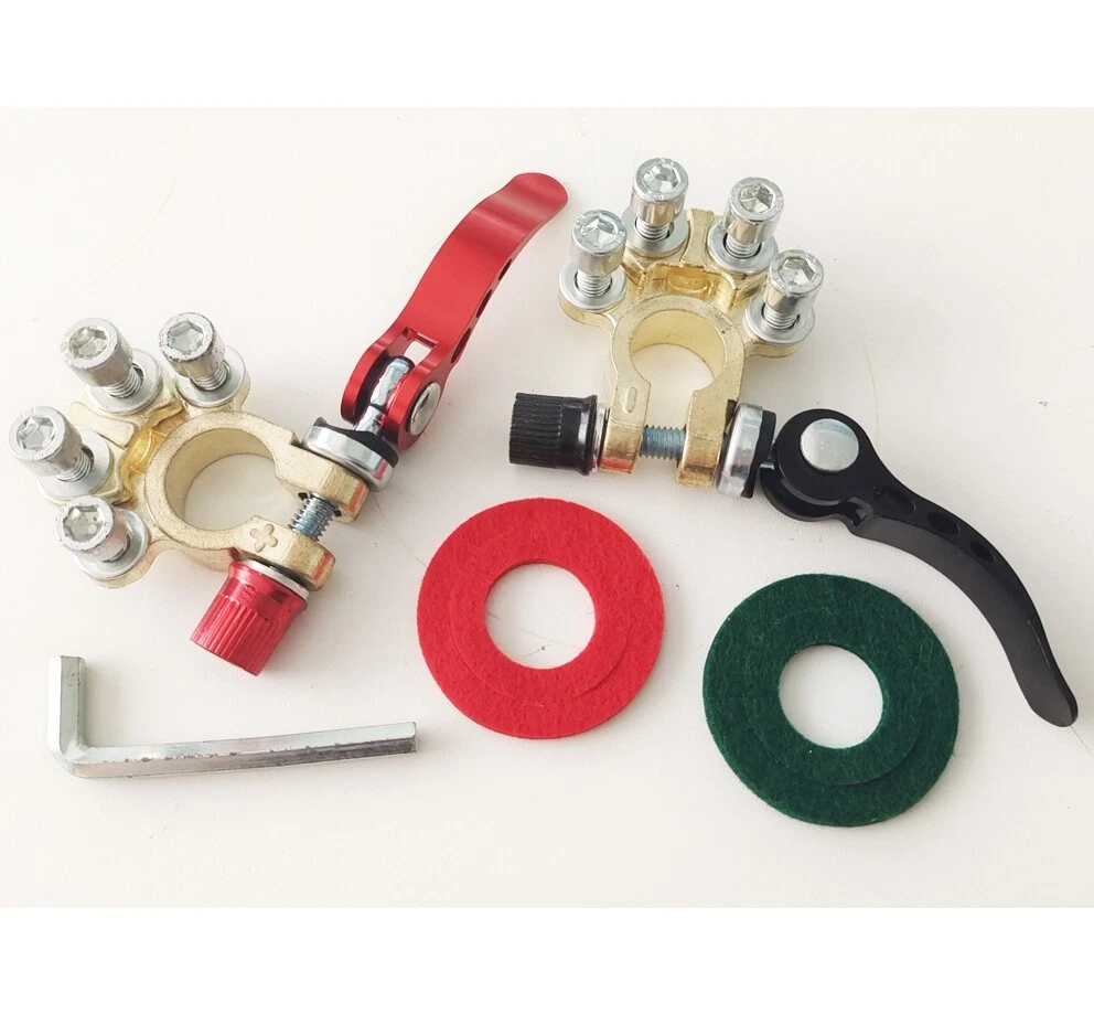 Package includes: 4 pieces of quick disconnect Car Battery Terminals Connectors Features: 4 post wire connection design to accommodate multiple cable connections. The package also includes Allen wrenches for easy installation. Suitable for wire diameters 4.1 - 8.2 mm (AWG gauges 0 - 16) and wire clamps 9.5mm - 6.5mm; can be effortlessly connected to the battery posts after installation. Comes with clearly labelled Positive (17.5mm-19.1mm) and Negative (15.9mm-17.5mm) Battery Terminal Connectors; ensures compatibility with most battery models and can replace worn out or corroded terminals. Wide-ranged application includes Cars, Vans, Caravans, Motorhomes, Truck Batteries, and Car Audio devices Car Battery Terminal Connectors 4Way Quick Disconnect Release Terminal Clip 4Pcs Package includes: 4 pieces of quick disconnect Car Battery Terminals Connectors Features: 4 post wire connection design to accommodate multiple cable connections. The package also includes Allen wrenches for easy installation. Suitable for wire diameters 4.1 - 8.2 mm (AWG gauges 0 - 16) and wire clamps 9.5mm - 6.5mm; can be effortlessly connected to the battery posts after installation. Comes with clearly labelled Positive (17.5mm-19.1mm) and Negative (15.9mm-17.5mm) Battery Terminal Connectors; ensures compatibility with most battery models and can replace worn out or corroded terminals. Wide-ranged application includes Cars, Vans, Caravans, Motorhomes, Truck Batteries, and Car Audio devices Brand Unbranded Manufacturer Part Number Does not apply Country/Region of Manufacture China Warranty 90 Day Positive taper hole size 17.5~19.1mm Type Battery Terminal Connector Material Brass+Aluminum alloy+steel Negative taper hole size 15.9~17.5mm quantity 4 Type 1 Battery Terminal Connector Clamp